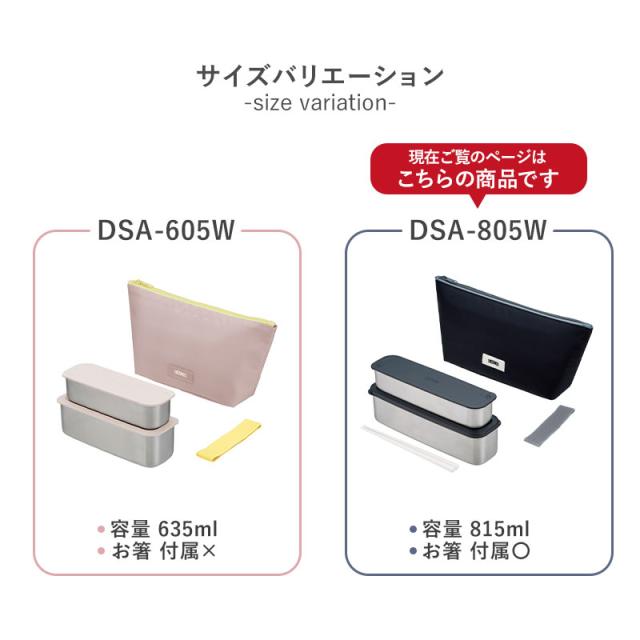 サーモス 弁当箱 2段 815ml 保冷 ケース付き 箸付き お箸 おはし 食洗機対応 二段 お弁当箱 フレッシュ ランチボックス 大人 THERMOS DSA-805W 黒 おしゃれ かっこいい ブラック スリム 軽量 ステンレス