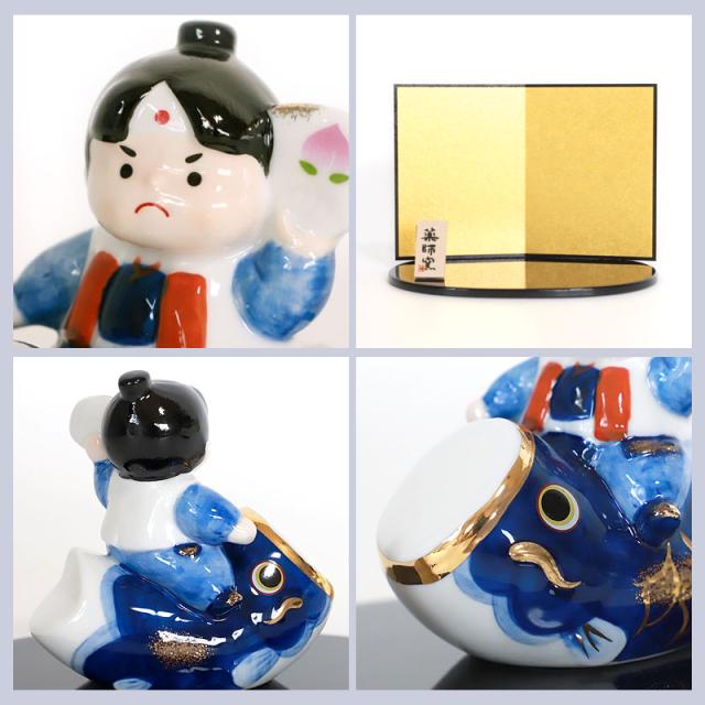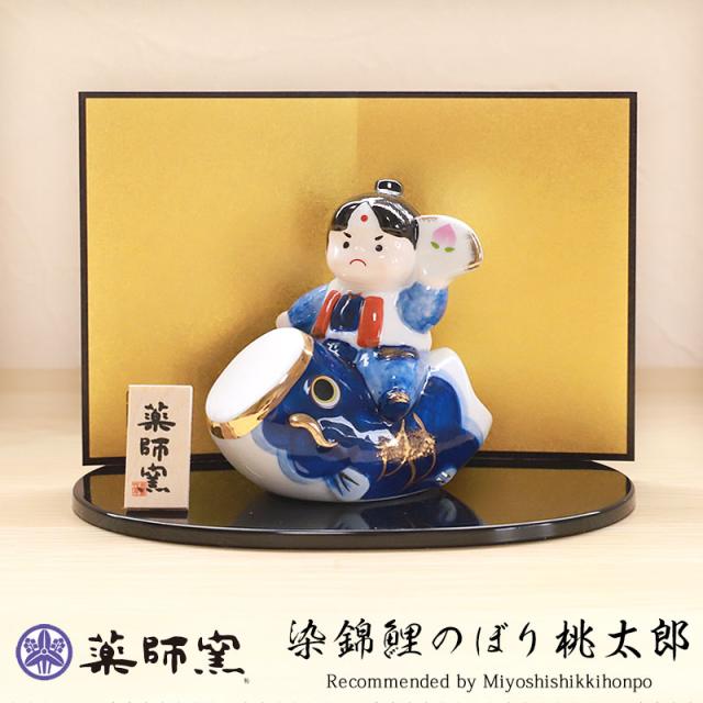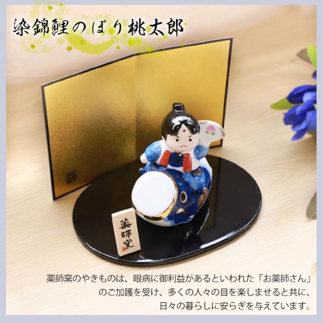 五月人形 染錦鯉のぼり桃太郎 薬師窯 コンパクト おしゃれ 兜飾り かっこいい 端午の節句 平飾り こどもの日 子供の日 陶器 初節句 節句飾り 省スペース マンション アパート インテリア 置物 人形 和雑貨 海外土産 送料無料