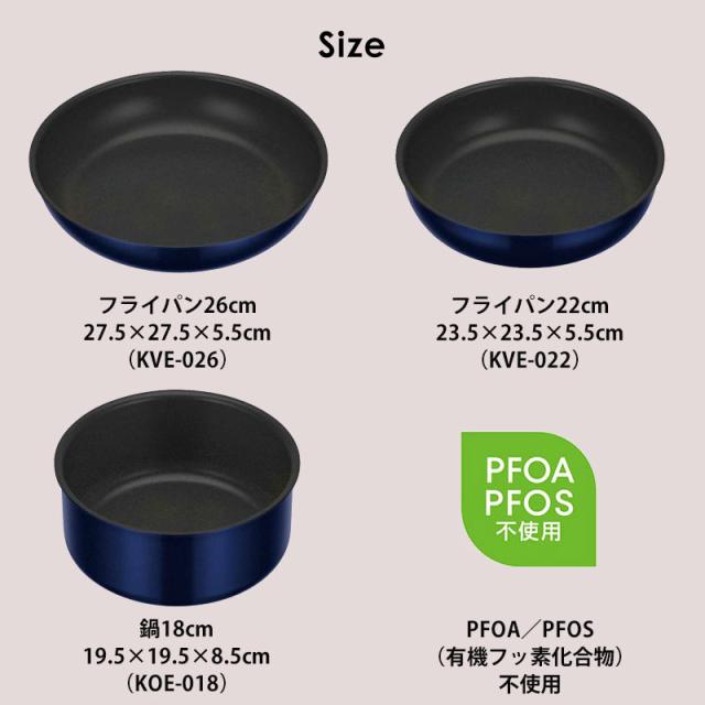 | セット内容 | フライパン22cm、26cm、お鍋18cm、鍋専用フタ18cm用、専用取っ手 |