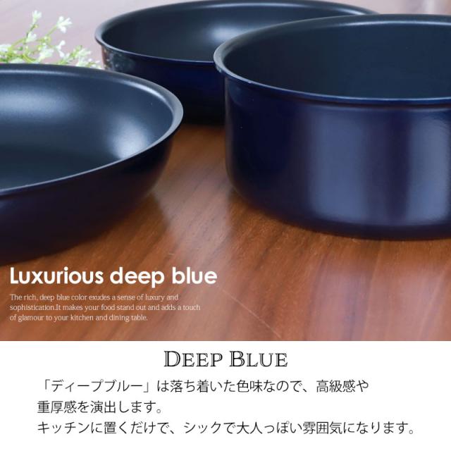 安心のサーモスブランドのフライパンのセットです。 ガス火専用となります。! ベーシックなフライパン3点、お鍋2点、鍋専用フタ2点にハンドルが付いた8点セット お料理の幅も広がり、セットで揃えるとキッチンに統一感がうまれます。 フライパン、お鍋は、硬質フィラーを配合した、耐久性コーティング。 耐摩耗性の高さと焦げつきにくさが特長です。 餃子の皮もつるっとはがれます。 また、取っ手は取り付け・取り外しOK。コンパクト収納が可能です。 焼く、煮る、炊く、オーブン料理がこれ一つできるので料理の幅が広がります。 深型設計だから、炒飯もパエリアもラクラク。 食洗機対応なのも嬉しいポイントです。 カラーは「ディープブルー」。落ち着いた色味なので、高級感や重厚感を演出します。 キッチンに置くだけで、シックで大人っぽい雰囲気になります。 |