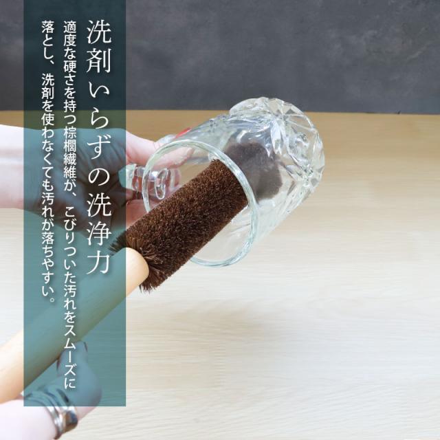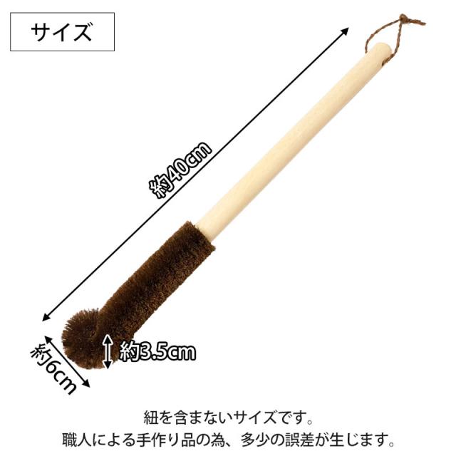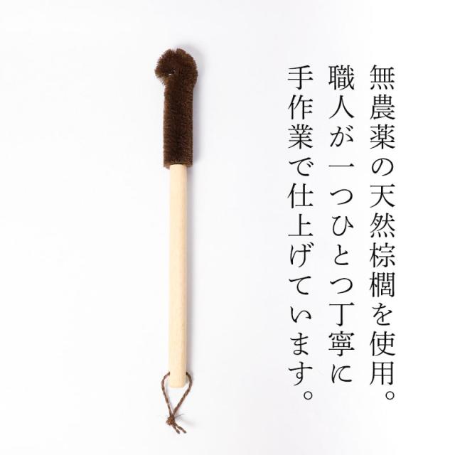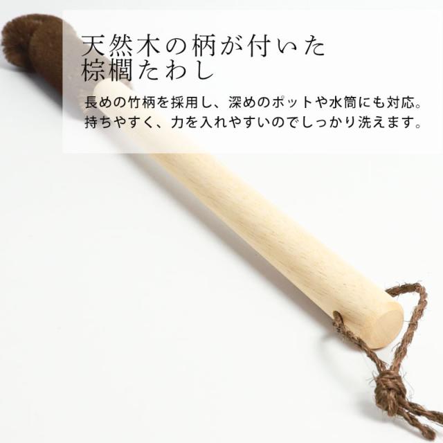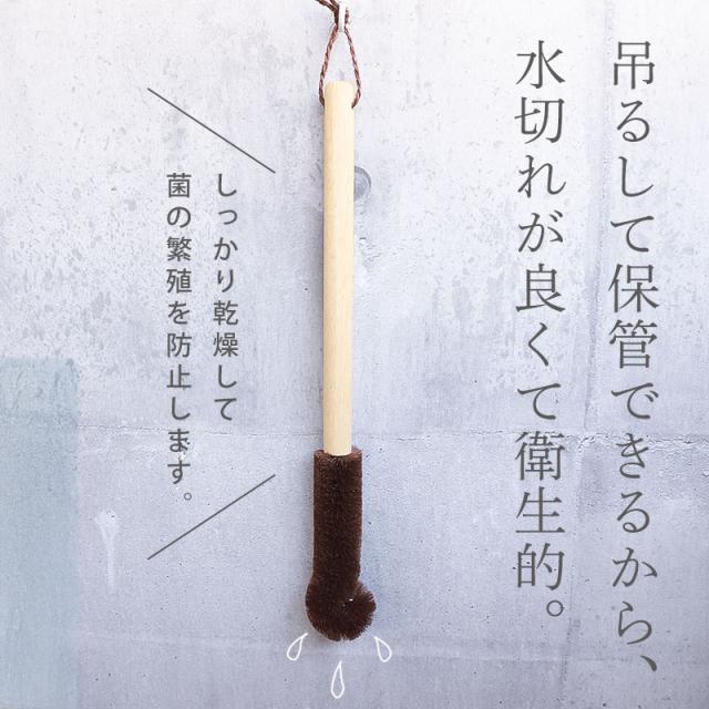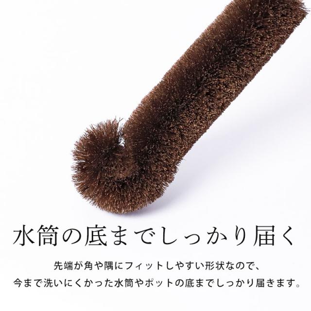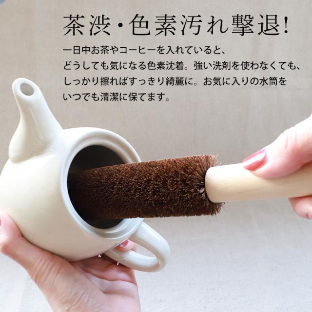 深くて洗いにくい水筒やポットを、すみずみまでしっかり洗える棕櫚たわしです。