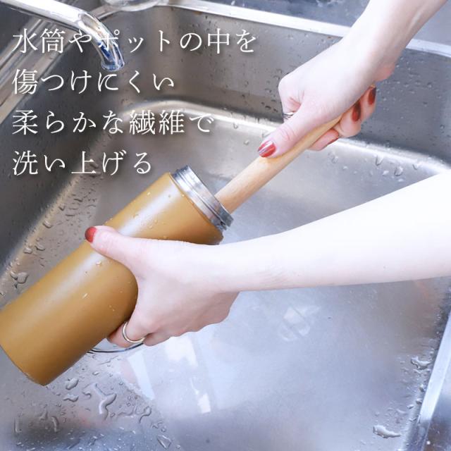長めの木柄を採用し、深めのポットや水筒にも対応。持ちやすく、力を入れやすいのでしっかり洗えます。