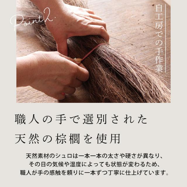 ●職人による手作りのため形やサイズが若干異なる場合があります。 ●棕櫚繊維を使用しているため、最初は粉や棕櫚繊維が落ちます。 ●強く擦りすぎると傷の原因になります。 ● モニター・ディスプレイによっても写り方が変わります。 予めご了承くださいませ。 |
