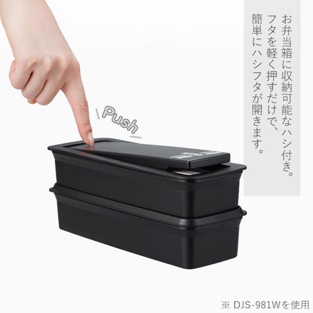 フタの端を軽く押すだけでスムーズに開き、内蔵されたハシも簡単に取り出せるので、ランチタイムを快適に過ごせます。