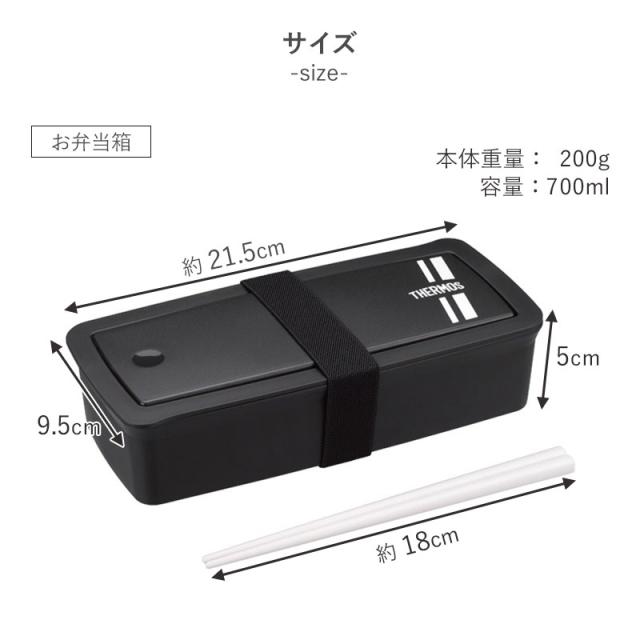 サーモス THERMOS お弁当箱 700ml 保冷ケース おしゃれ 軽量 洗濯機OK 保冷袋 お弁当袋 ランチバッグ 食洗機対応 電子レンジ対応 箸付き 1段 お箸 仕切り DJS-701 RFH-002 ランチボックス ブラック 黒 かっこいい シンプル
