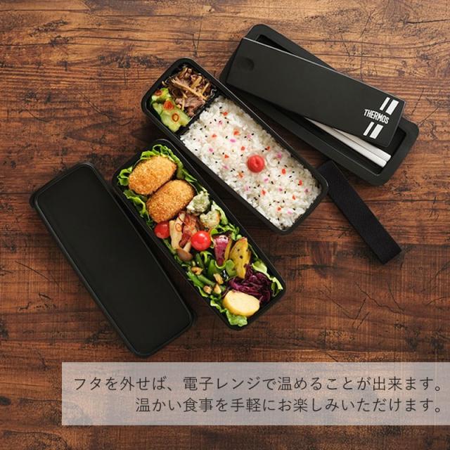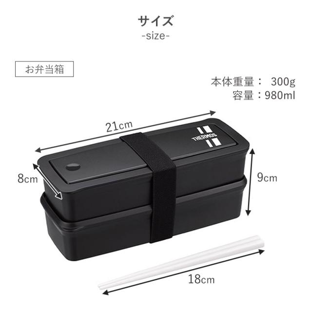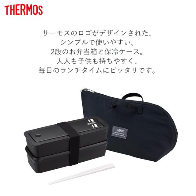 サーモス THERMOS お弁当箱 980ml 保冷ケース 大容量 洗濯機OK 保冷袋 お弁当袋 ランチバッグ 食洗機対応 電子レンジ対応 箸付き 2段 お箸 仕切り DJS-980W RFH-002 ランチボックス ブラック 黒 かっこいい シンプル