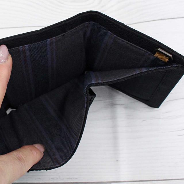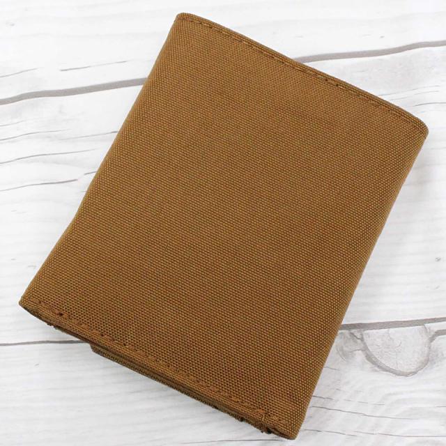 カーハート特有のタフな素材感で小型ながら収納力を備えた3つ折りウォレットです。