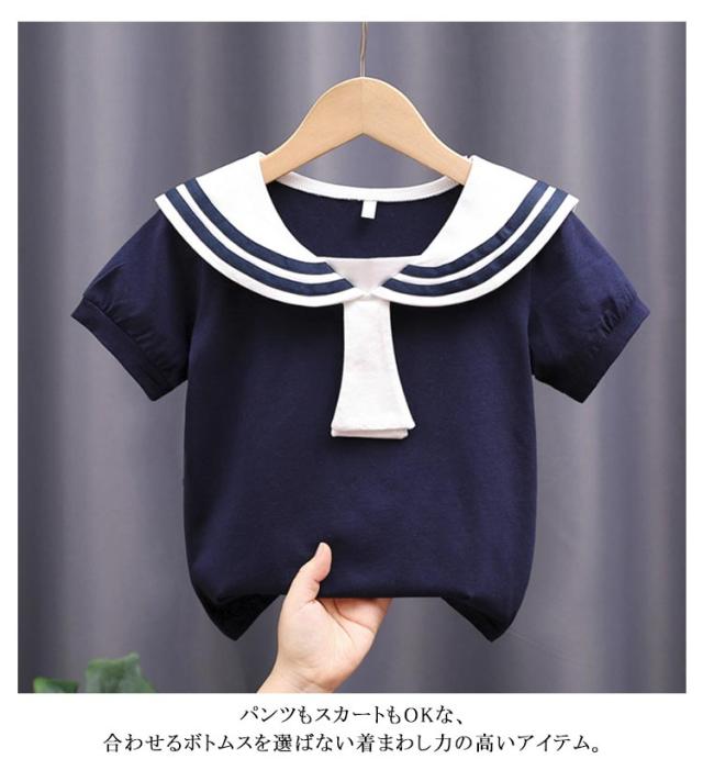 半袖 ブラウス 子供服 セーラー襟 セーラーカラー キッズ お出かけ 女の子 男の子 夏 tシャツ トップス おしゃれ 可愛い 子供服 マリン こども 子ども 春夏 大きいサイズ かわいい ベビー シンプル おしゃれ カジュアル セーラー 通園 通学 ギフト プレゼント 送料無料