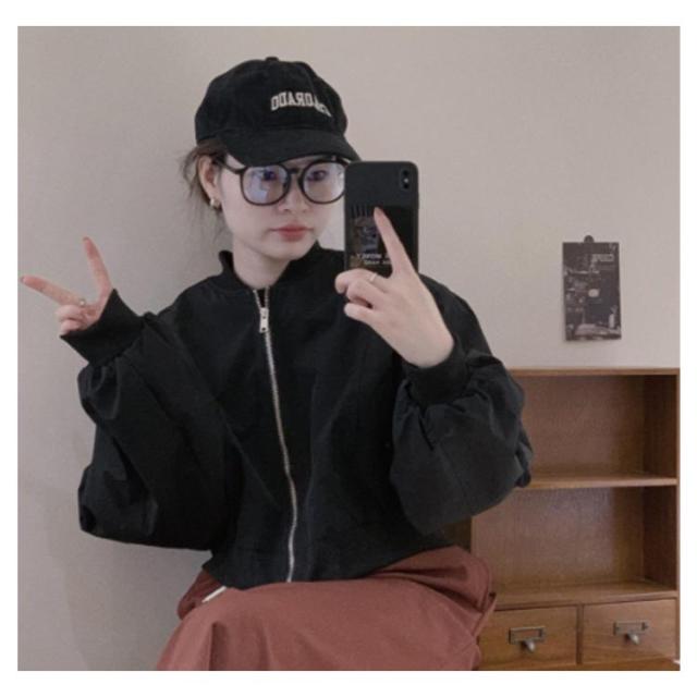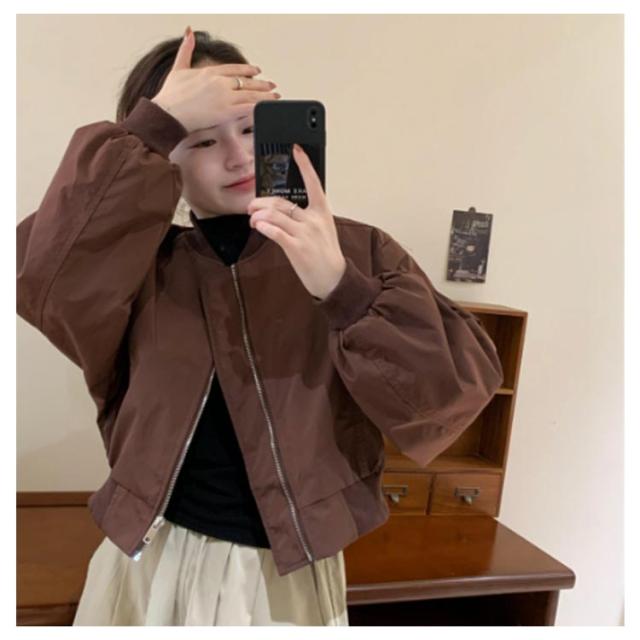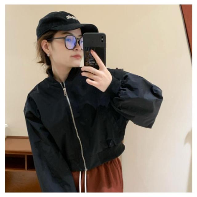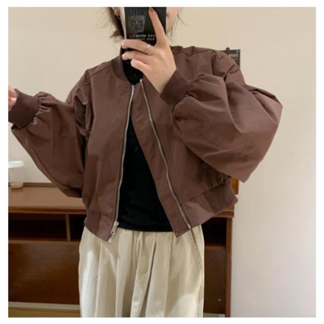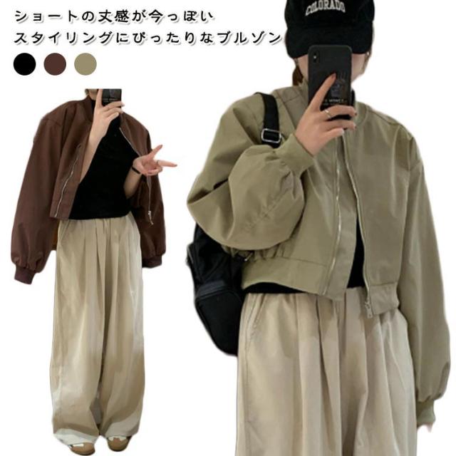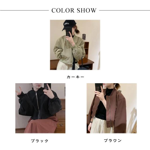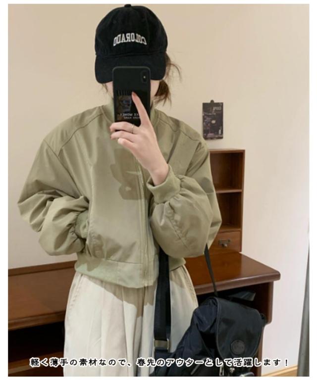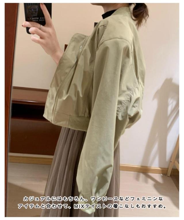 ショート丈 ブルゾン MA-1 レディース 春 ミリタリー ジャケット ジャンパー 春ジャケット ライトアウター 薄手 パフ袖 ボリューム袖 ノーカラージャケット スカジャン フライトジャケット カジュアル おしゃれ シンプル 送料無料