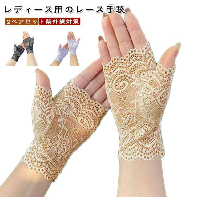 UVカット UV手袋 レディース おしゃれ レース 指切り 2ペアセット 薄手 ひんやり 紫外線対策 日焼け対策 日焼け止め UV対策 アウトドア スポーツ 夏 UVグローブ 自転車 指なし 指切り手袋 きれいめ 母の日 かわいい 新作 送料無料