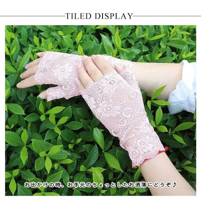 | レディース用のレース手袋 お出かけの時、お手元のちょっとしたお洒落にどうぞ♪ 普段の紫外線対策としても、上品なレースなので、パーティなどにもオススメです♪ 蒸し暑くないいレース素材、肌に馴染むような薄手の生地で、快適なつけ心地です。 指切りタイプ、手袋を付けたままスマホに操作できて便利です。 | |