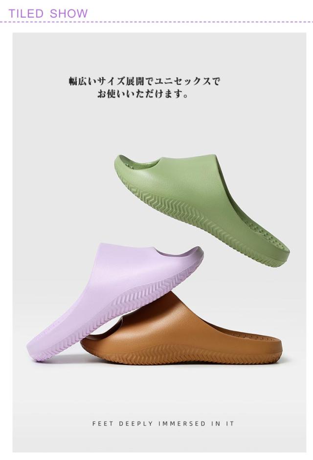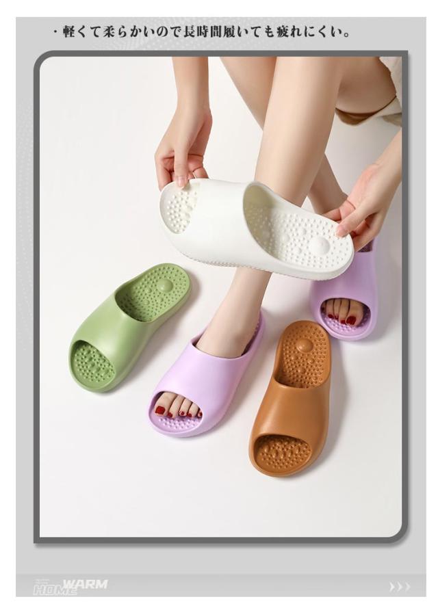 | ・気軽に履いて、足裏マッサージ♪ ・軽くて柔らかいので長時間履いても疲れにくい。 ・ベランダや玄関はもちろん、浴室などの水回りでも活躍してくれるアイテム。 ・幅広いサイズ展開でユニセックスでお使いいただけます。 | |