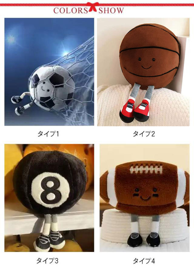 | キュートで癒されるボールぬいぐるみ。 ふわふわ肌触り、安心の抱き心地 高品質のぬいぐるみ生地を使用し、なめらかで柔らかい手触り。しっかりしたPP綿入りで、ふんわりモチモチ、赤ちゃんにも優しい安心素材。 ユニークなボールデザイン&かわいい表情 ボールのデザインに、愛らしい表情や個性的なアクセントをプラス!おもちゃとしてはもちろん、お部屋のインテリアにもぴったり♪ 多用途&ずっと一緒に! お子さまの安眠おともぬいぐるみとして、遊び相手として、さらにはプレゼントとしてもおすすめ。 ストレス解消にぴったりの癒し系 もちもちした弾力で、抱きしめるだけで癒される♪ ギュッと抱っこすれば気分もリフレッシュ!お子さまだけでなく、大人にもオススメのリラックスアイテムです。 | |
