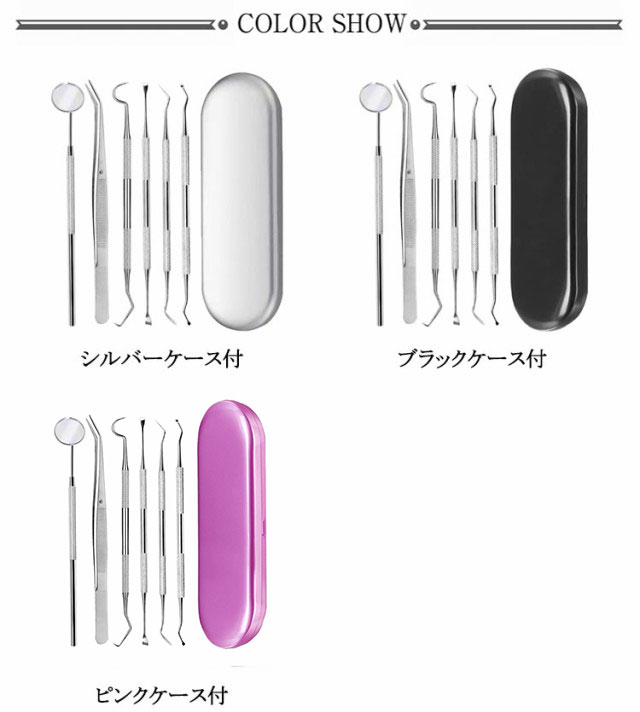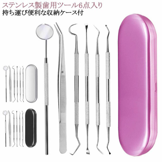 ケース付き 歯石取り プロ仕様 先極細 デンタルツール 歯垢 スケーラー 6点セット/収納ケース付 ヤニとり ステンレス製 歯石取り 歯石除去 自宅用 歯石とり 虫歯 自分で取る 歯科ツールセット 口腔ケア器具 器具 敬老の日 ギフト 母の日 父の日 プレゼント 贈り物 送料無料