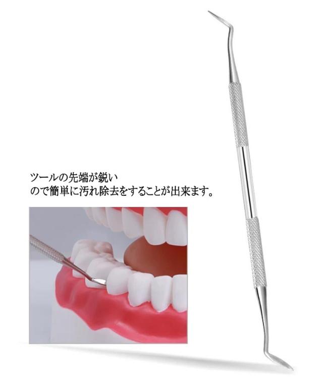 | ステンレス製歯用ツール6点入り/持ち運び便利な収納ケース付 高級ステンレス製歯用ツール、ご家庭でも使えるプロ用セット。 自宅で本格汚れ除去、充実の7点セット。 初心者にも安全安心の高級ステンレス製。 自宅で手軽に 食べかす、歯石、歯垢、虫歯、色素沈着に、本格的な口内ケアを。 ワンちゃんの健康維持に大事な犬歯ケアーにも。 ツールの先端が鋭いので簡単に汚れ除去をすることが出来ます。 耐久性と防カビ性にすぐれ、滑り止め設計されているので持ちやすい。 | |