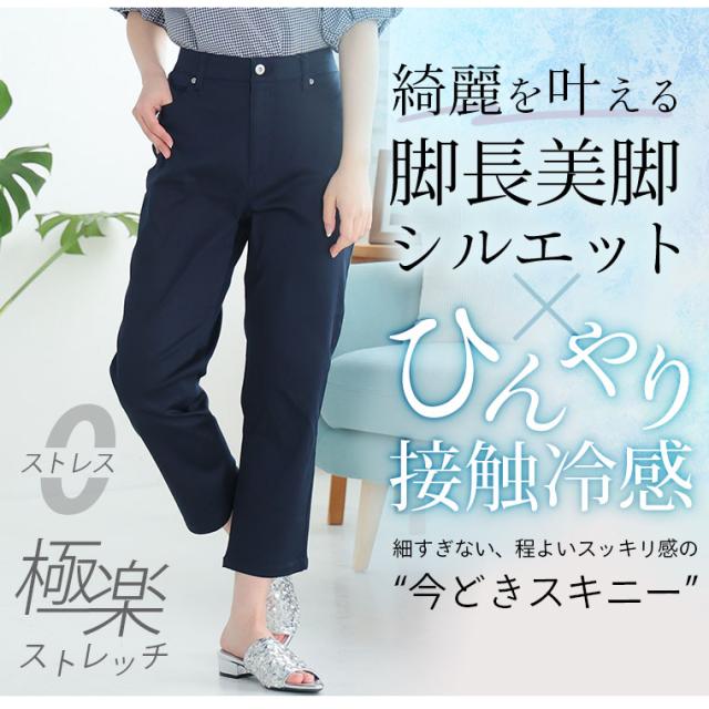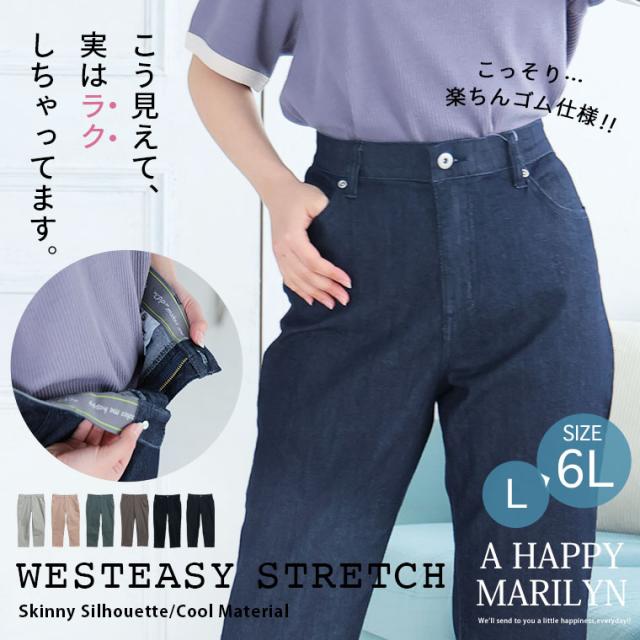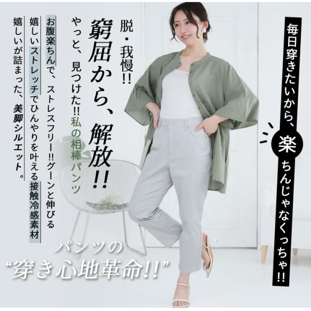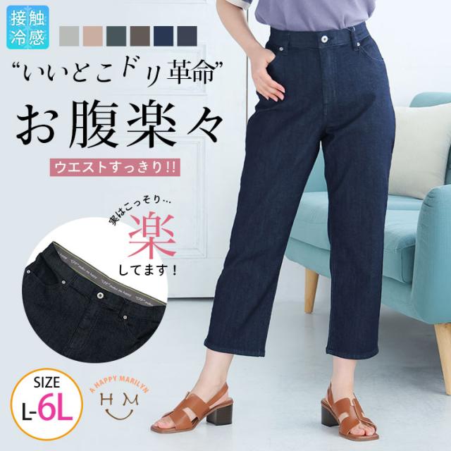 新作 大きいサイズ レディース パンツ | お腹楽らく♪ デニムとカラーで選べる ひんやり 美脚の接触冷感 ウエストゴム ストレッチパンツ [861690] LL 3L 4L 5L 6L