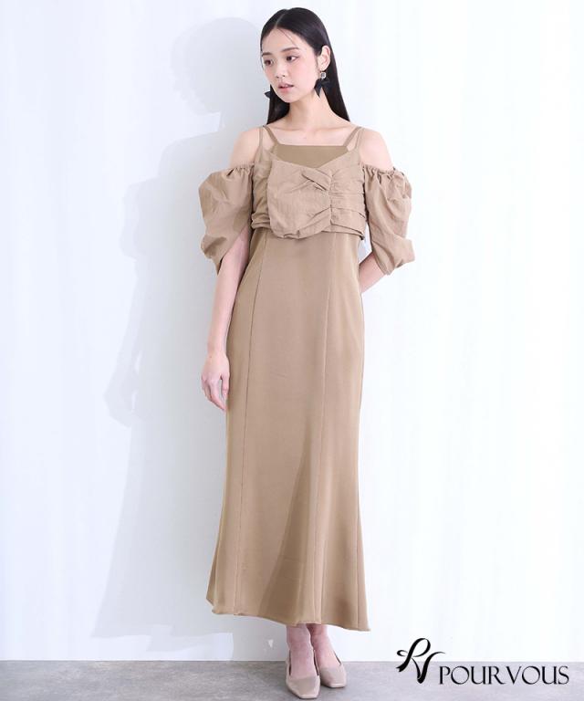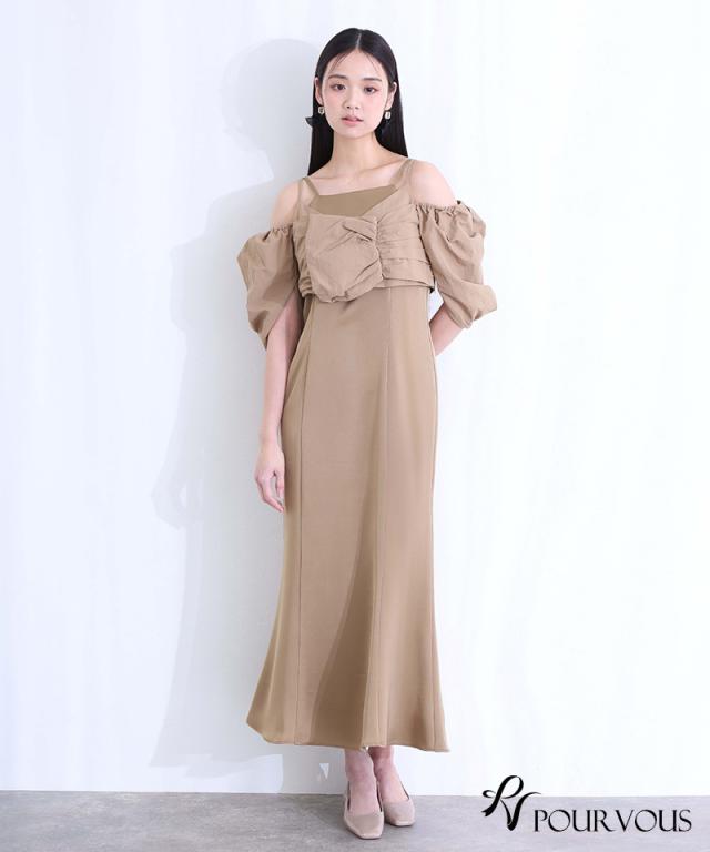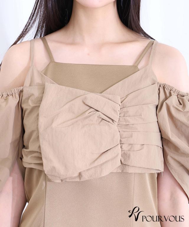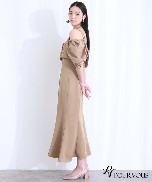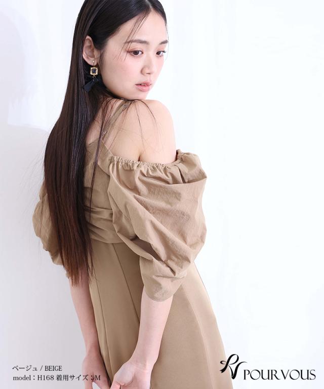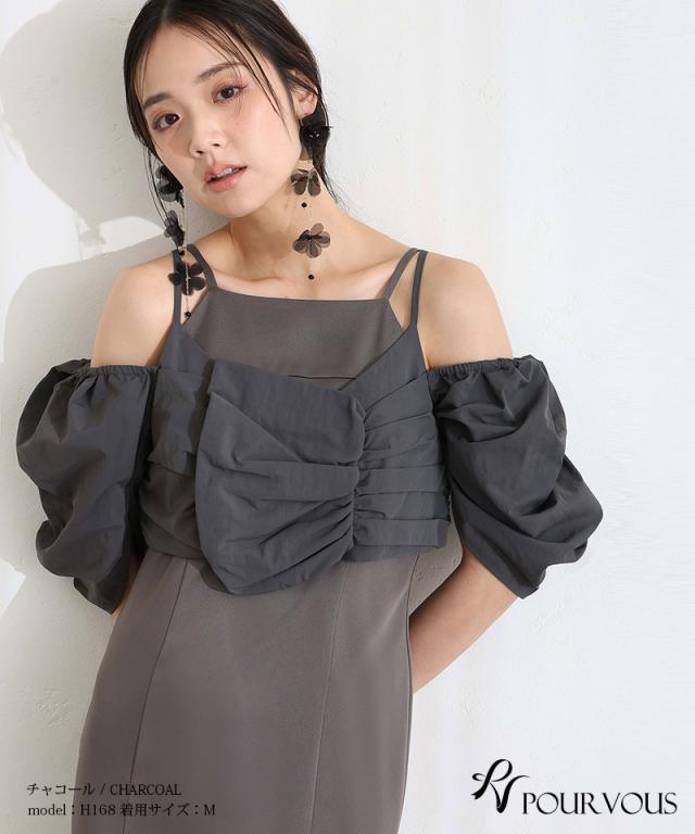 パフスリーブとオフショルダーの切り替えが可能な2way仕様で、