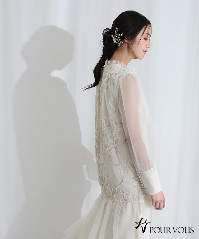 パールとビジューが上品に煌めいてエレガントな印象に。