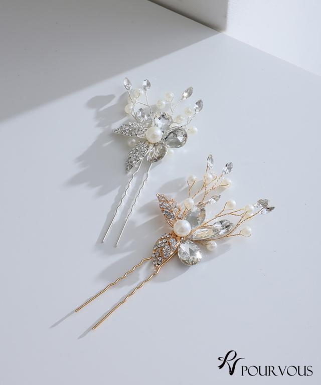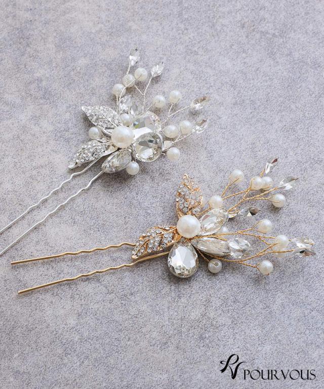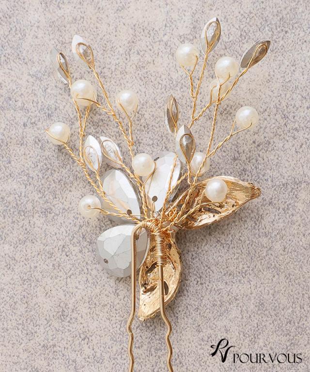 391251222 ヘアピン ヘアアクセサリー 花 フラワー フォーマル パール ビジュー セレモニー 大人 上品 パーティードレス アクセサリー シルバー 20代 結婚式 ゴールド アクセ ドレス 40代