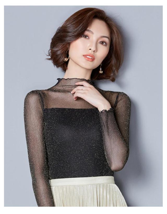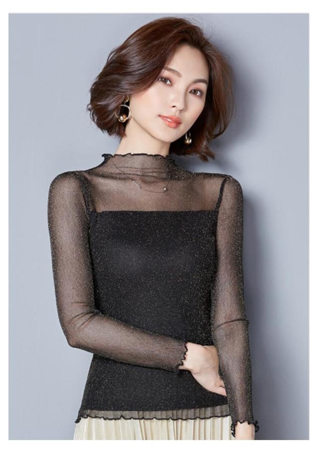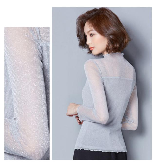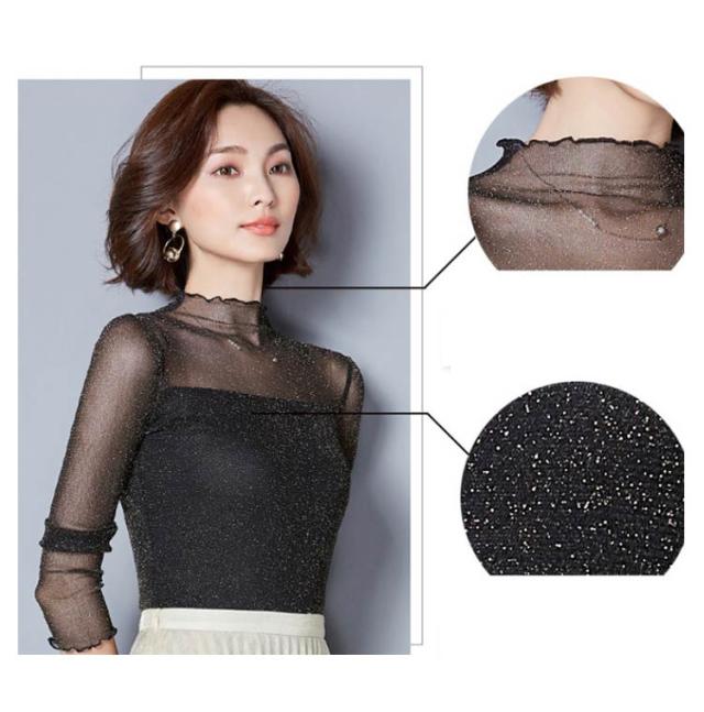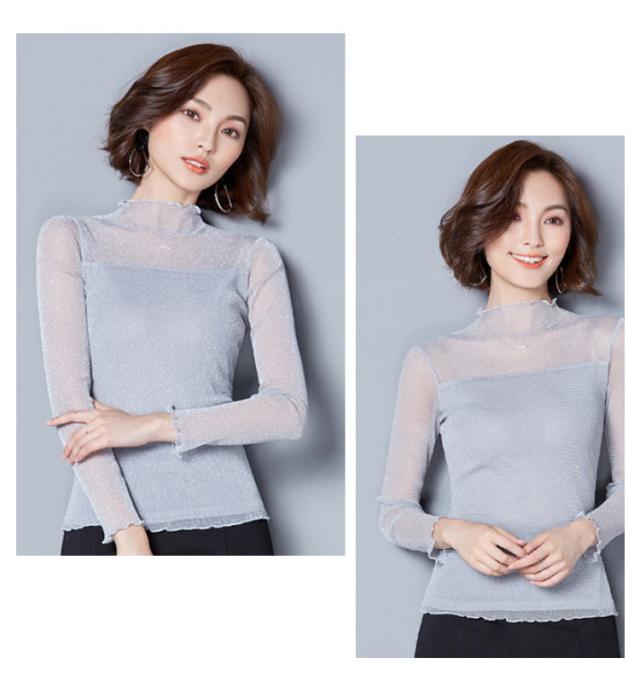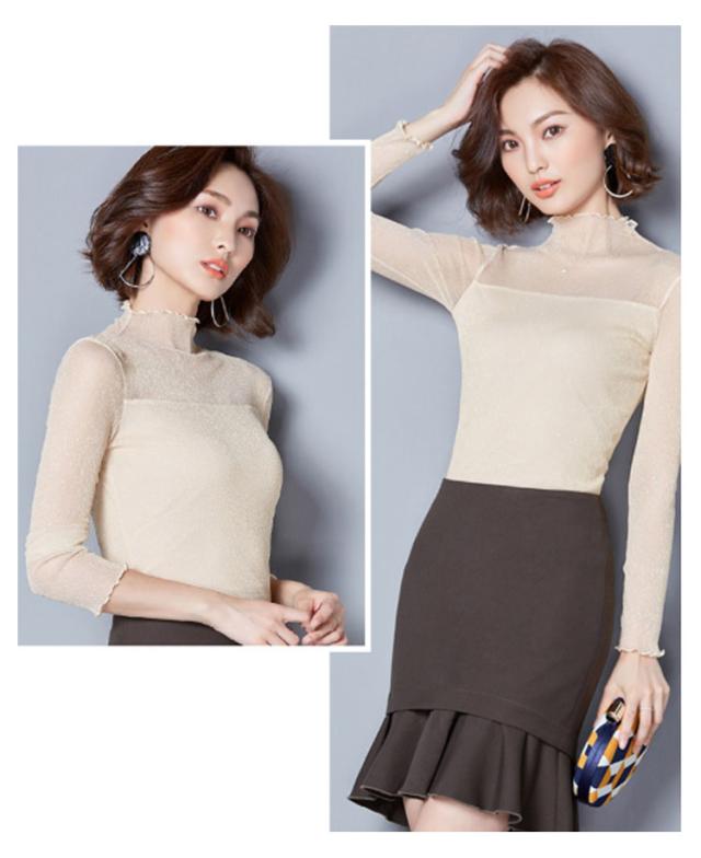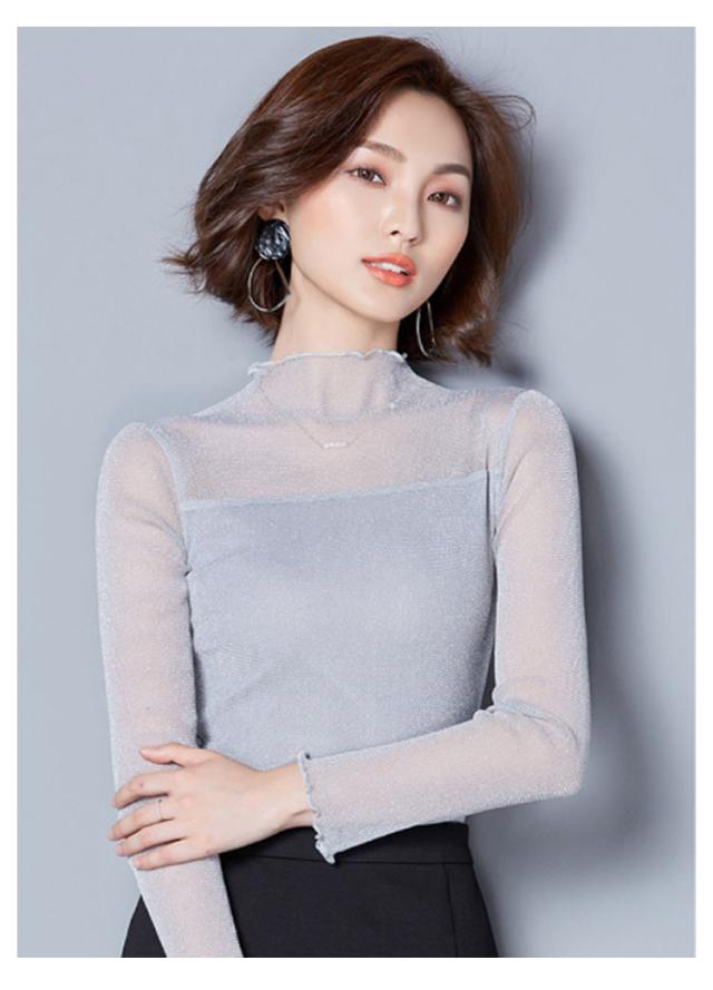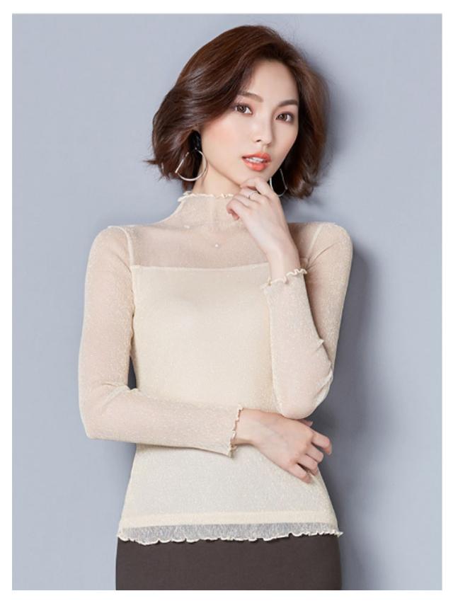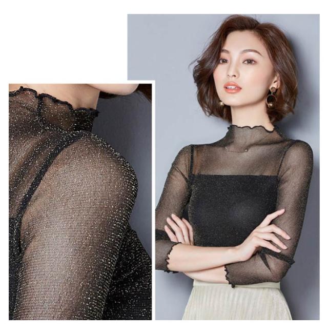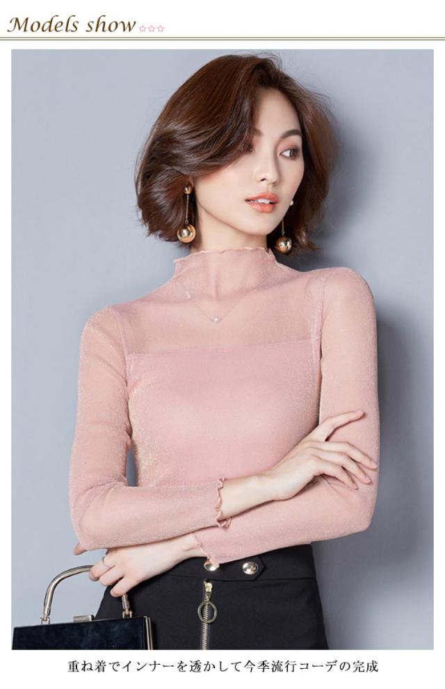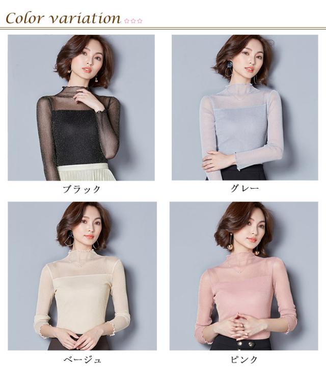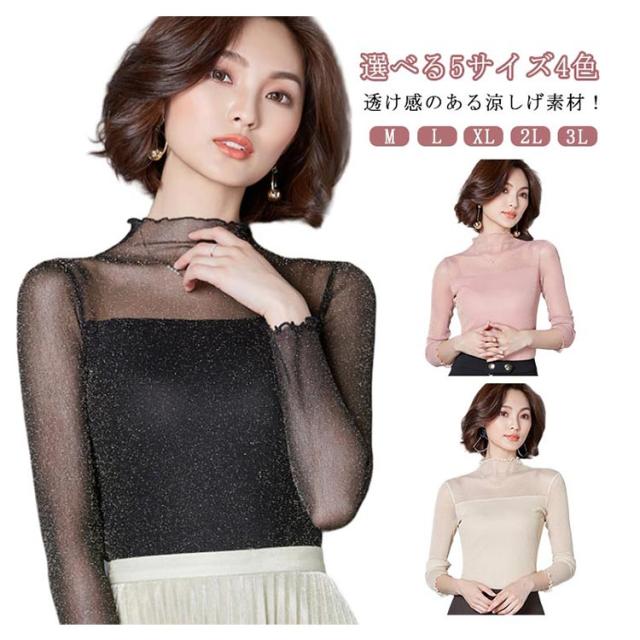 涼しい 透け感 シアートップス レディース UVカット カットソー シアー トップス シアートップス ハイネック 夏 キラキラデザイン タイト 無地 重ね着 夏 春
