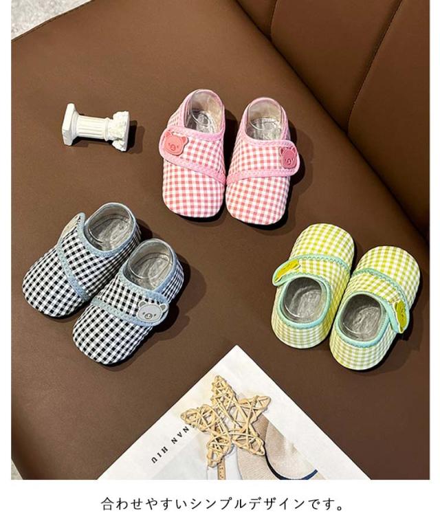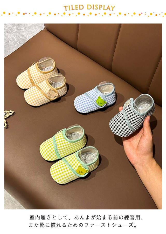 ベビー マジックテープ ベビー チェック柄 ファーストシューズ 滑り止め ファーストシューズ やわらかい 靴 ベルクロ 室内 シューズ ベビーシューズ 子供 赤ちゃん 男の子