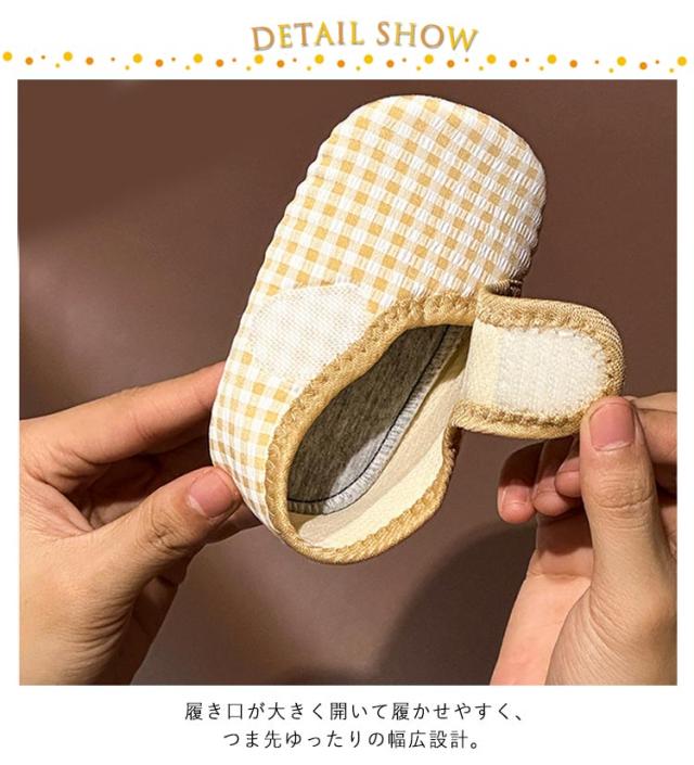 | ・よちよち歩きの赤ちゃんの足にぴったりのベビーシューズ! ・室内履きとして、あんよが始まる前の練習用、また靴に慣れるためのファーストシューズ。 ・履き口が大きく開いて履かせやすく、つま先ゆったりの幅広設計。 ・靴底には滑り止め付き。 ・合わせやすいシンプルデザインです。 | |