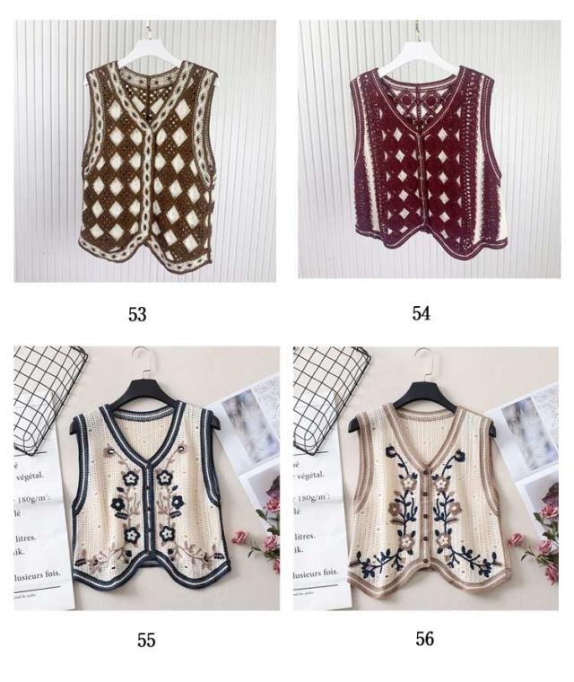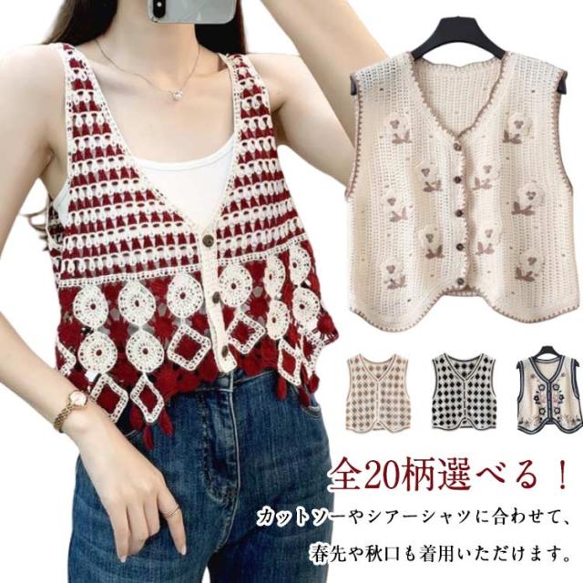 全20柄 エスニック レディース 柄 ジレ かぎ編み 春 全20柄 刺繍 大きいサイズ 花柄 トレンド かぎ針 20代 30代 ベスト 春夏 人気 カジュアル