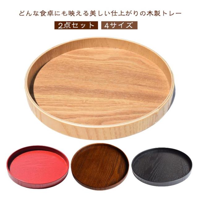 丸盆 天然木製 トレー お盆 膳 円形 木製 白木 木のトレー 和風 【2点セット】木製トレー 北欧 おしゃれ トレイ カフェトレー ナチュラル スタッキング 収納 ランチョンマット 配膳 お節 お正月 おもてなし カフェ風 洋風 和室 来客用