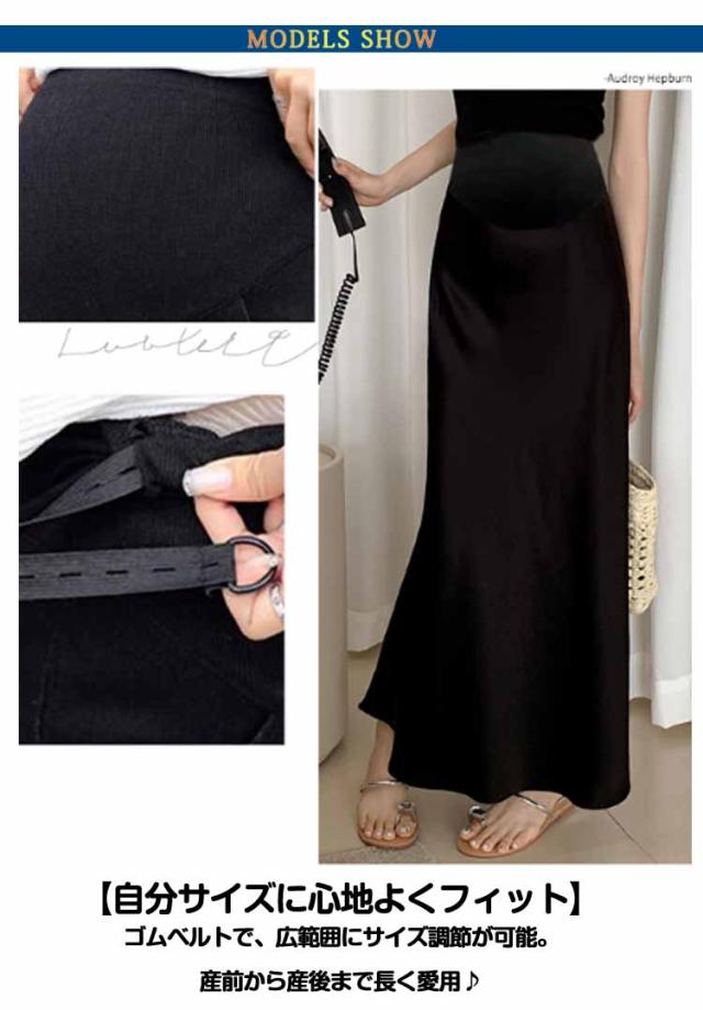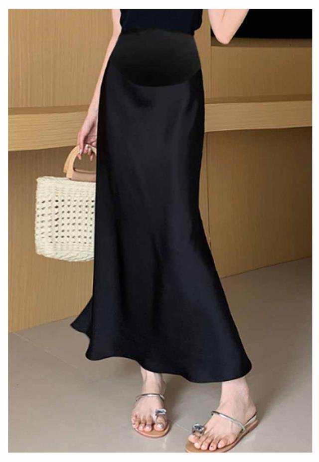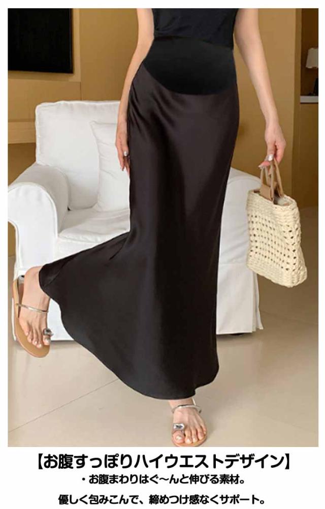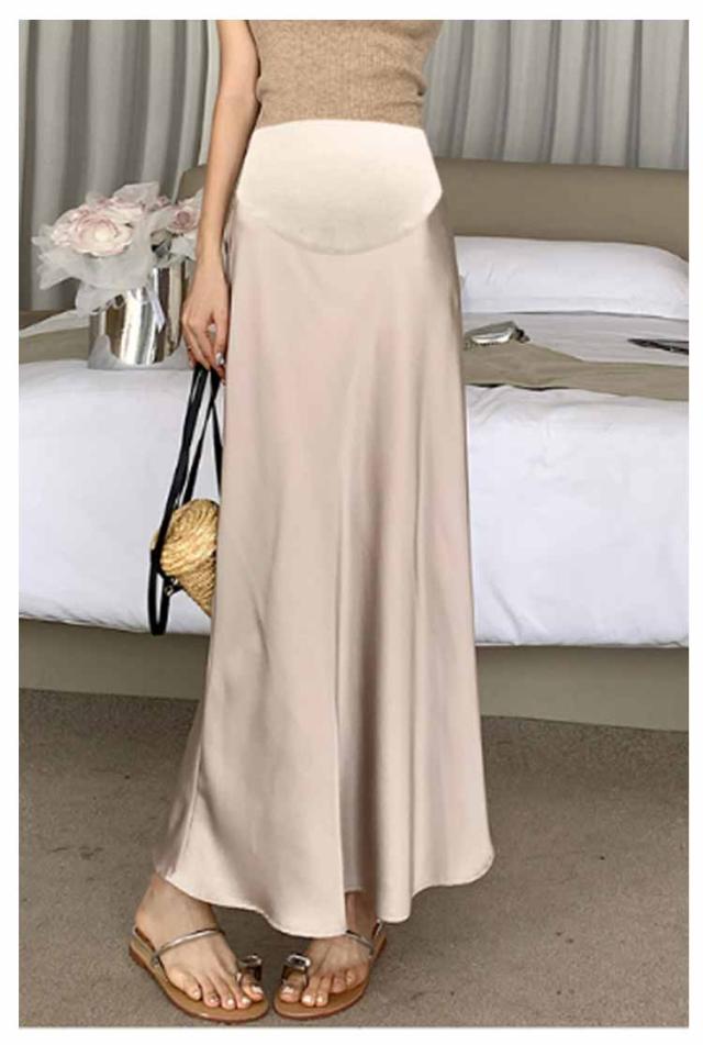 光沢感 ロング丈 妊婦 タイト 産前 妊婦服 きれいめ マタニティ ボトムス サテンスカート ロングスカート 接触冷感 サテン 産後 ウエストゴム 妊娠 aライン フレアスカート レディース マキシ スカート とろみ 落ち感 服 ボトムス オフィス 通勤 春 夏 秋