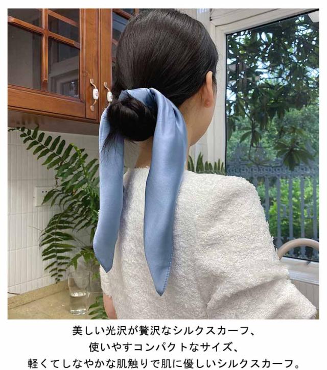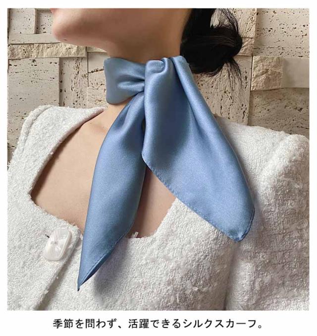 | 季節を問わず、活躍できるシルクスカーフ。 美しい光沢が贅沢なシルクスカーフ、使いやすコンパクトなサイズ、軽くてしなやかな肌触りで肌に優しいシルクスカーフ。 お肌に優しい天然素材、暑い季節には涼しく、寒い季節には暖かさを保つ性質があるシルクスカーフ、春夏の首元の紫外線対策にもおすすめです。 首元や鞄につけて、いつもの雰囲気に変化をつけてみたり、ヘアアクセサリやお洋服のアクセントにも華やかに見せてくれます。 | |