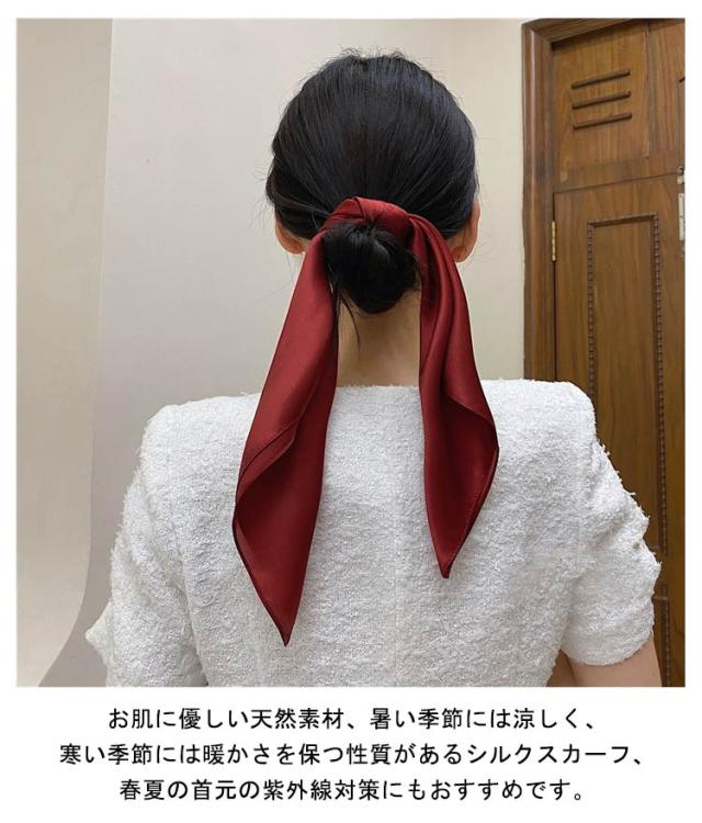 制服 ネッカチーフ 無地 シルク シルクスカーフ スカーフ ストール UVカット 首元隠し 頭飾り スカーフ ネックカバー オフィス 髪の包帯 シルクスカーフ 通勤用 旅行 贈り物 プレゼント 紫外線対策 送料無料