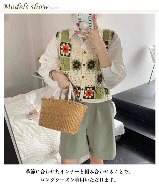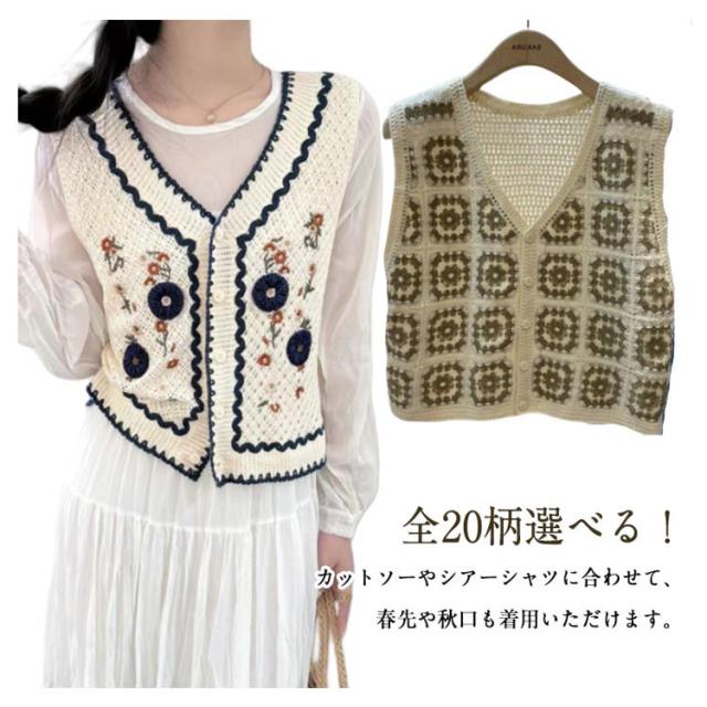ジレ 花柄 全20柄 レディース かぎ針 ベスト トップス 全20柄 エスニック 大きいサイズ 刺繍 柄 透かし編み 20代 30代 春 春夏 人気 カジュアル