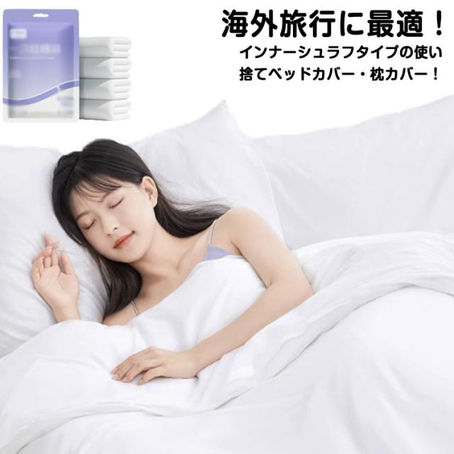 | 【海外旅行に最適!】 インナーシュラフタイプの使い捨てベッドカバー・枕カバー! 吸湿・通気性のある不織布製なのでべたつきがなく、サラッと快適に睡眠していただけます。 使い捨てだからクリーニングで繰り返し使わないので清潔です。 付け替えが簡単!時短! | |