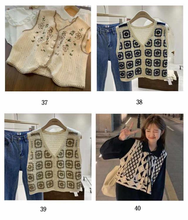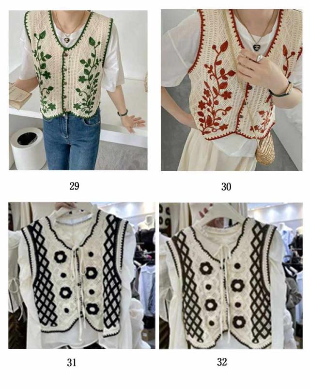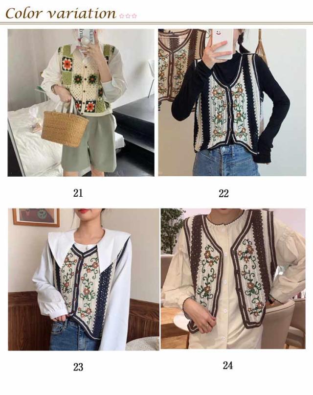 全20柄 かぎ編み 大きいサイズ 全20柄 ジレ レディース エスニック ベスト 花柄 かぎ針 春夏 刺繍 透かし編み 20代 30代 春 柄 人気 カジュアル
