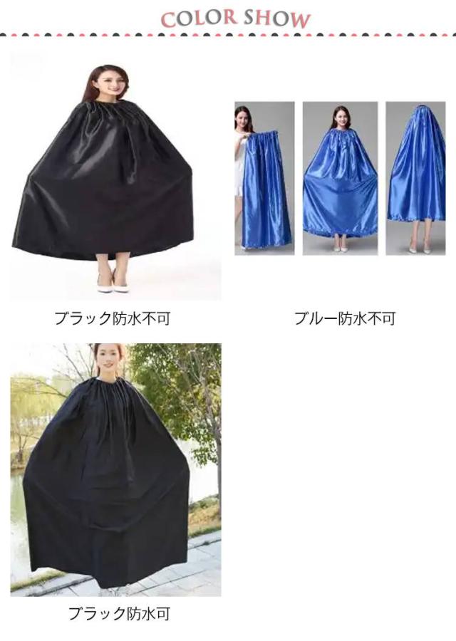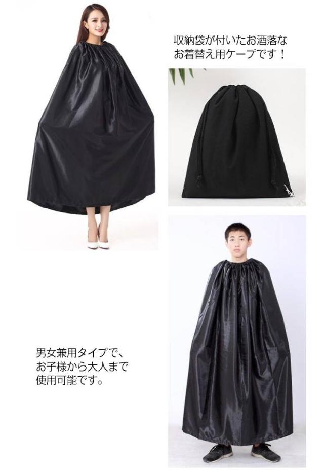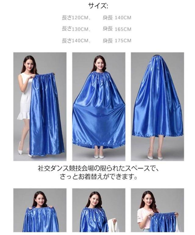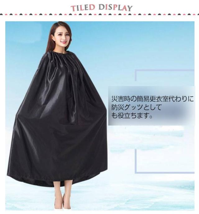 | 【防水機能付き/防水機能なし2タイプ!】 収納袋が付いたお酒落なお着替え用ケープです! 災害時の簡易更衣室代わりに防災グッツとしても役立ちます。 首元がゴム仕様になっているのと生地面積も広いのですぐに着替えやすい。 男女兼用タイプで、お子様から大人まで使用可能です。 社交ダンス競技会場の限られたスペースで、さっとお着替えができます。 | |