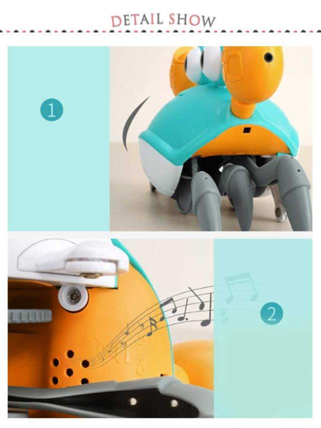| 音楽を奏でながら動き回るカニのおもちゃです。 センサー障害物回避機能を搭載しており、移動中に障害物に遭遇しセンサー感知すると反対方向に移動します。 ミュージカルなカニのおもちゃ、ボタンひとつで、ミュージックモードに切り替え可能。 衝撃に耐えることができます。高品質のカニは無毒のABS素材で作られています。 音楽を奏でながら、リアルに動く様子は大人も子供も楽しい気分にさせてくれます。 USB充電ケーブル付き、2時間の充電時間で最大20分のノンストップ動作が可能です。 体の動きと協調を刺激することで子どもの発育を助けることができます。 注:このおもちゃを水や湿気の多い環境で使用しないでください。 | |
