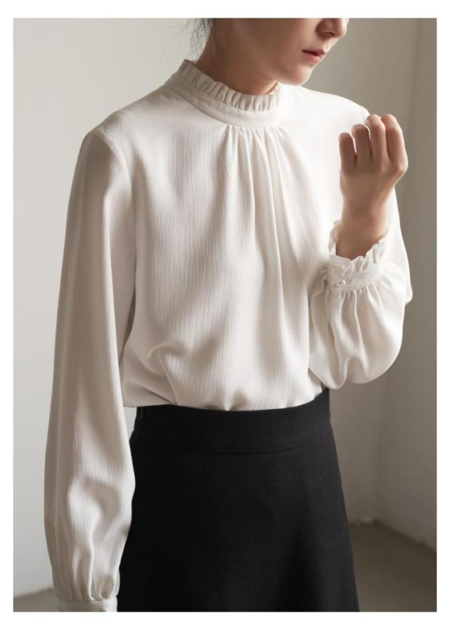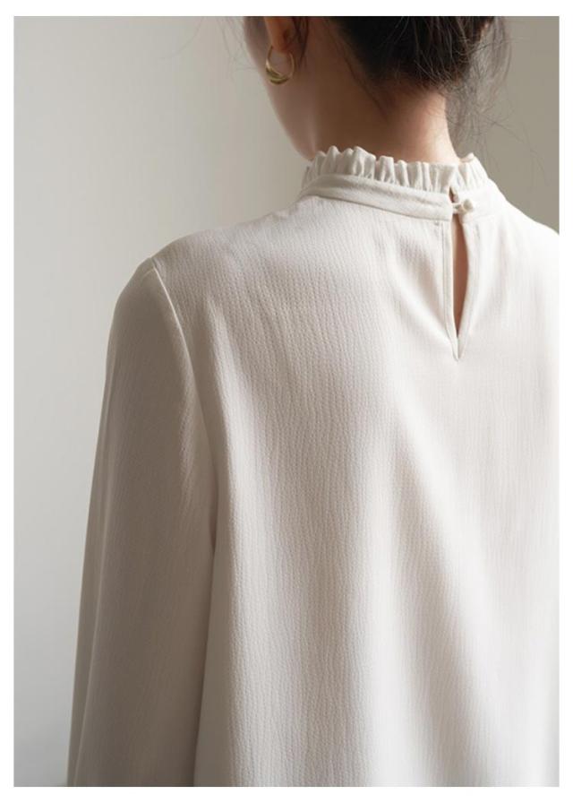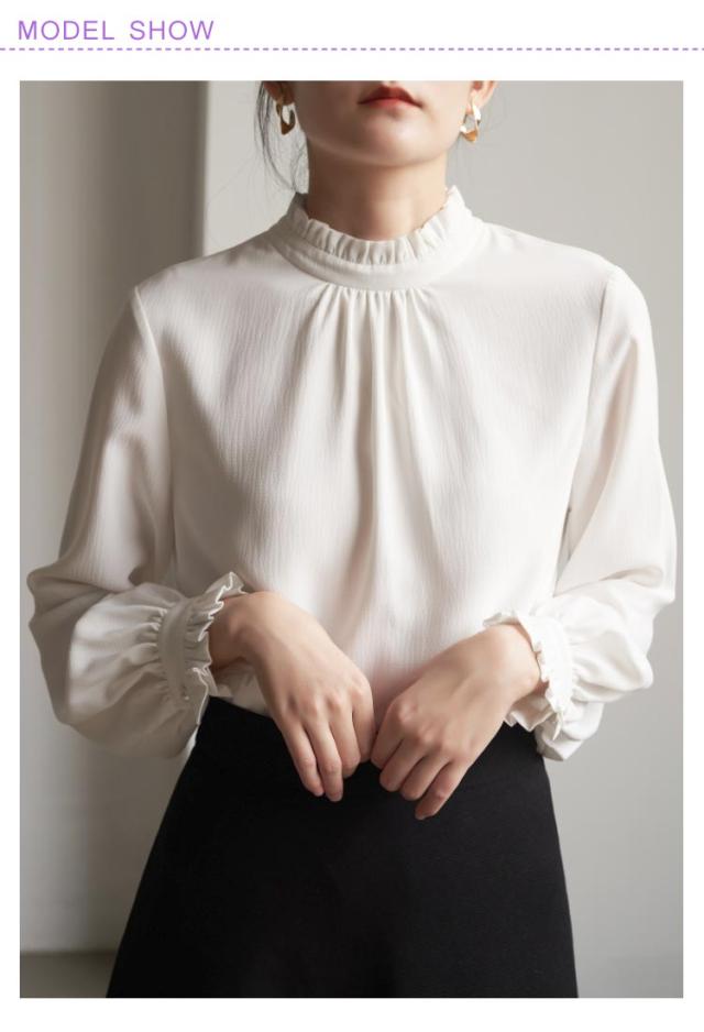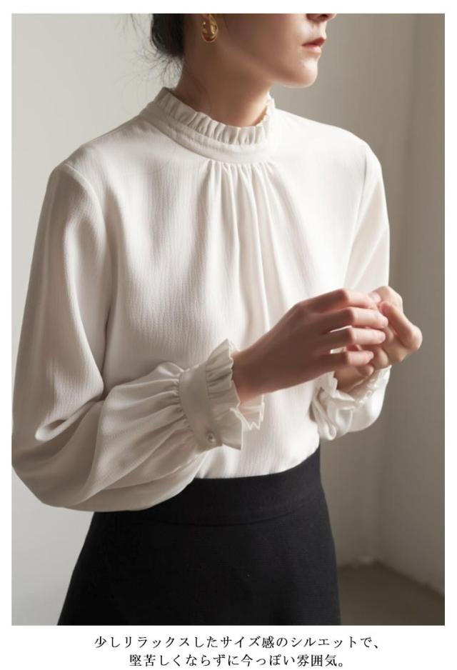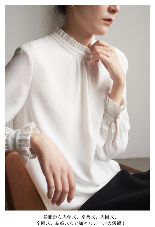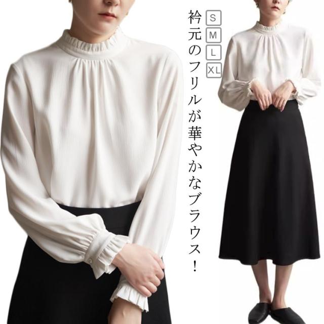 フリル襟 ブラウス レディース シャツブラウス お洒落 結婚式 立ち襟 入学式 フォーマル ブラウス オフィス ママ スーツインナー スタンドカラー 卒業式 無地 七五三 通勤 OL 白 ホワイト 黒 春秋