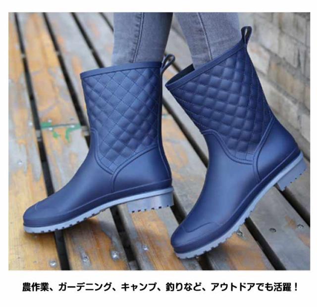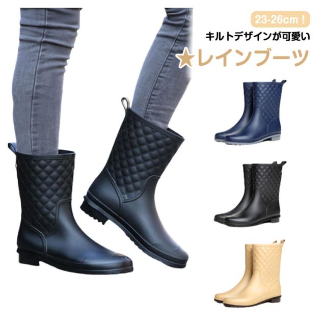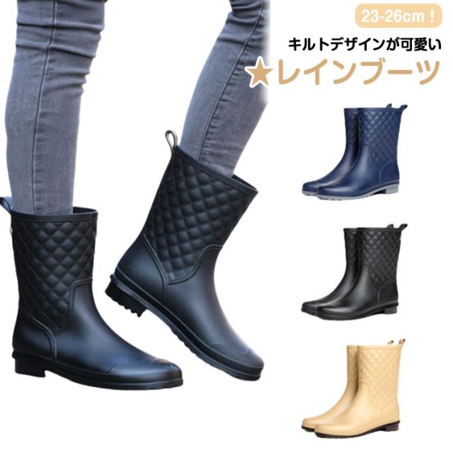 キルティング 梅雨対策 レインブーツ ブーツ おしゃれ ミドル丈 レディース 雨 雪 防水 晴雨兼用 靴 通勤 レインシューズ かわいい レインブーツ 農作業 ガーデニング 長靴 防水靴 大人可愛い ブラック 黒 ネイビー ベージュ