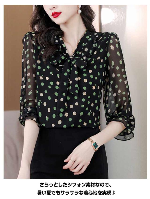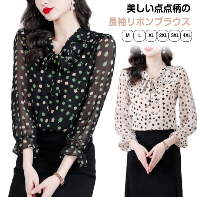 シャツ ブラウス 長袖 柄パターン トップス ベージュ 夏 黒 リボン レディース 春夏 ブラウスシャツ 春 きれいめ シースルー 透け感 ゆったり ブラウス ブラック リボンタイ オフィス カジュアル オフィスカジュアル 20代 30代 40代 ママ 母