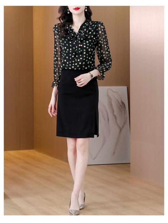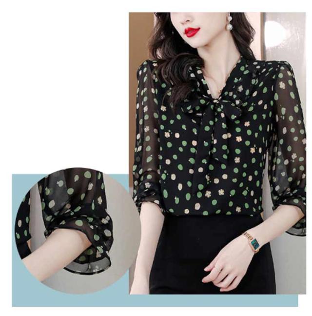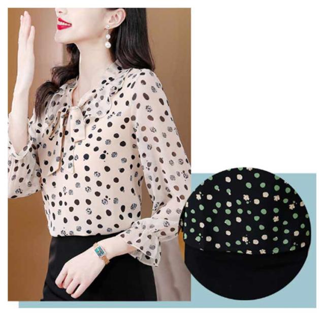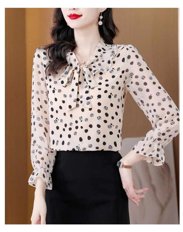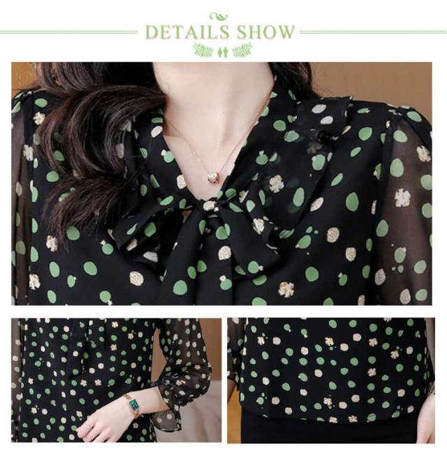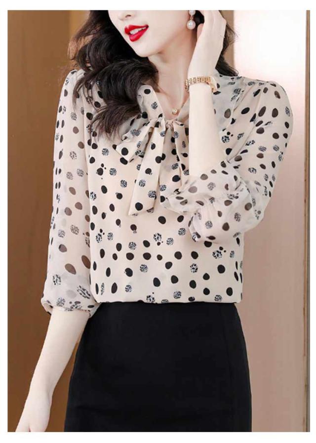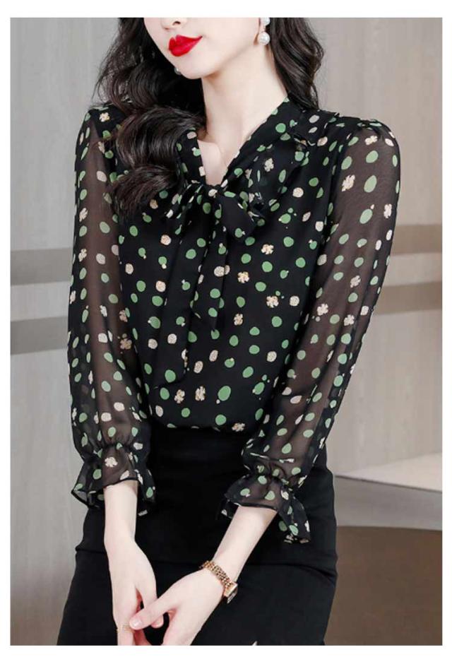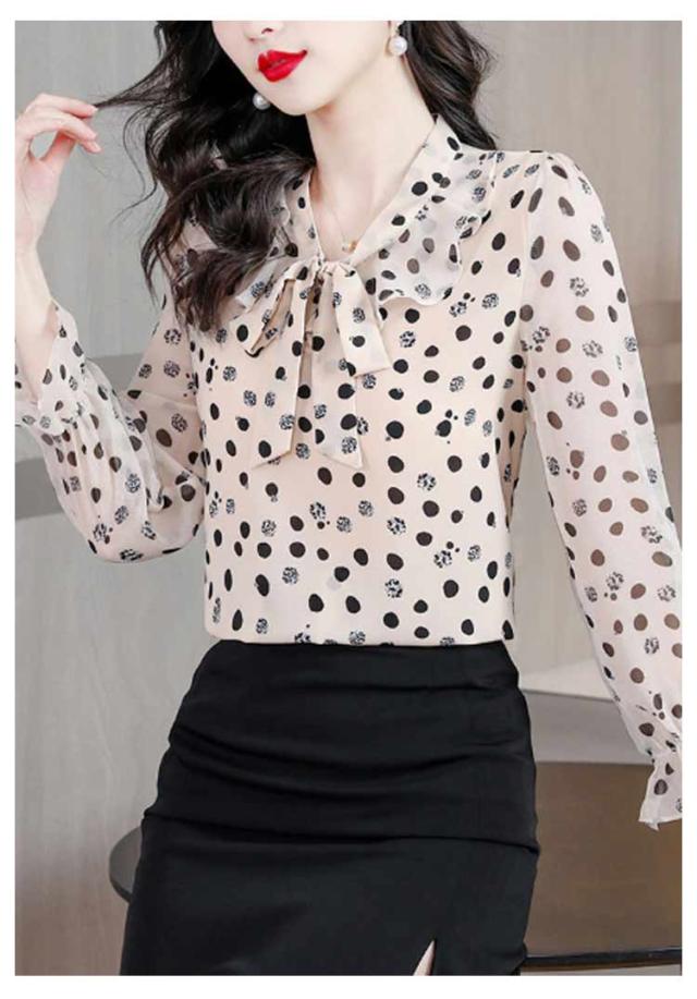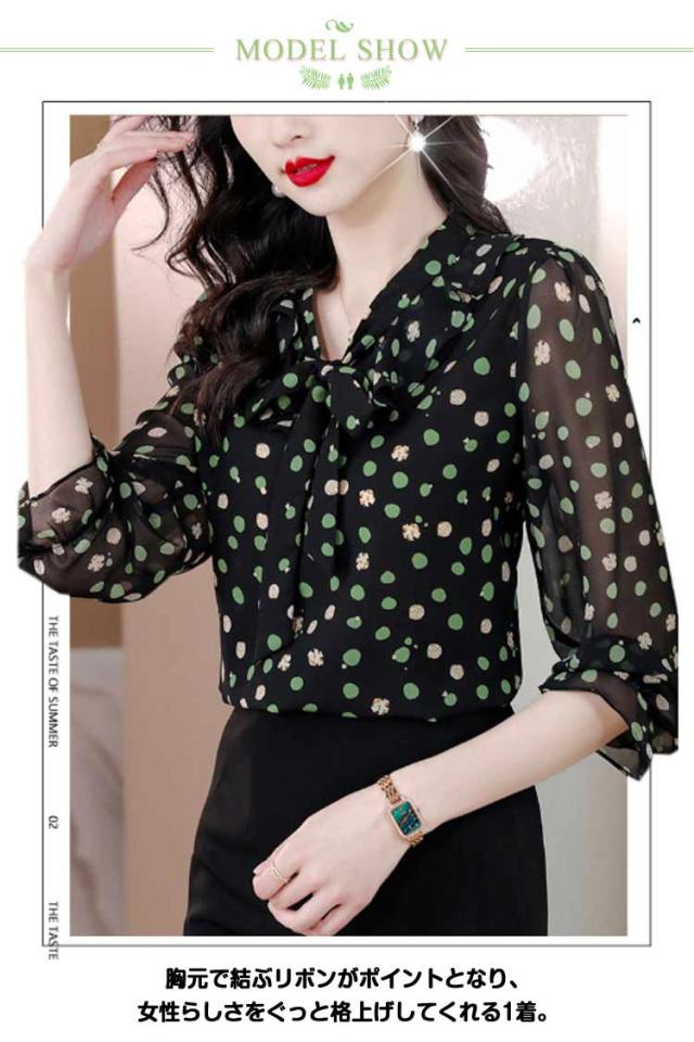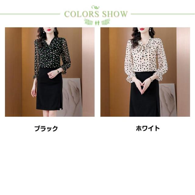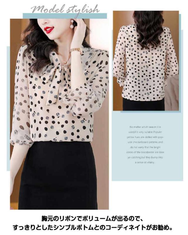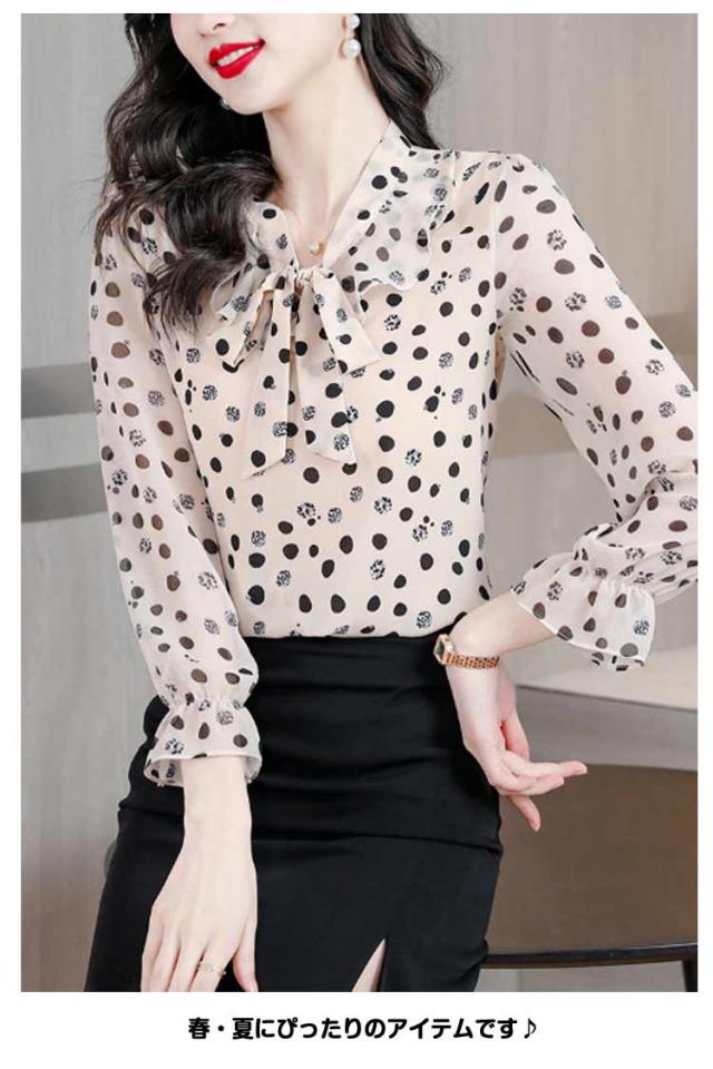 | 美しい点点柄の長袖リボンブラウス。 胸元で結ぶリボンがポイントとなり、女性らしさをぐっと格上げしてくれる1着。 胸元のリボンでボリュームが出るので、すっきりとしたシンプルボトムとのコーディネイトがお勧め。 さらっとしたシフォン素材なので、暑い夏でもサラサラな着心地を実現♪ 春・夏にぴったりのアイテムです♪ | |