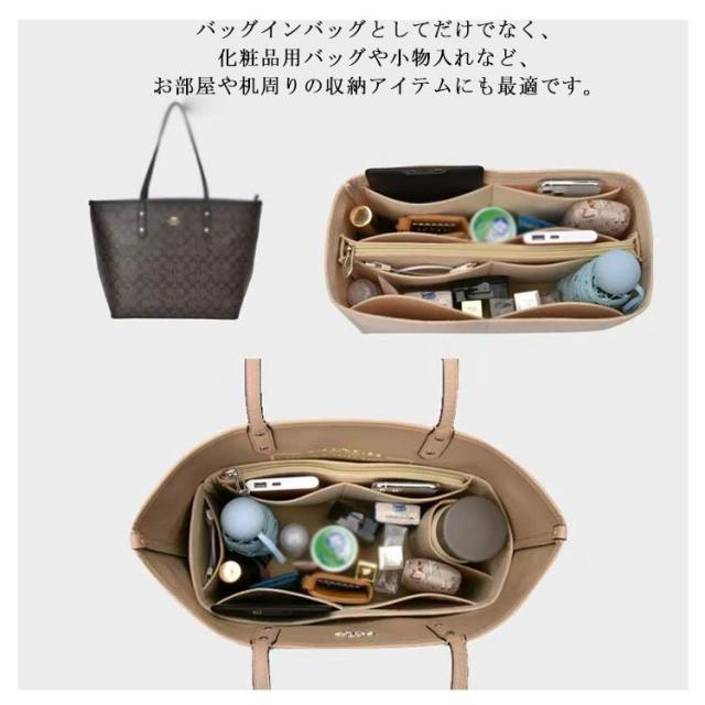 3タイプ 形崩れない フェルトバック インナーバッグ 自立式 仕切り バッグインバッグ 縦型 軽量 小物整理 収納ポーチ ファスナー付き 大容量 トートバッグ用 通勤 プレゼント バッグインバッグ 母の日