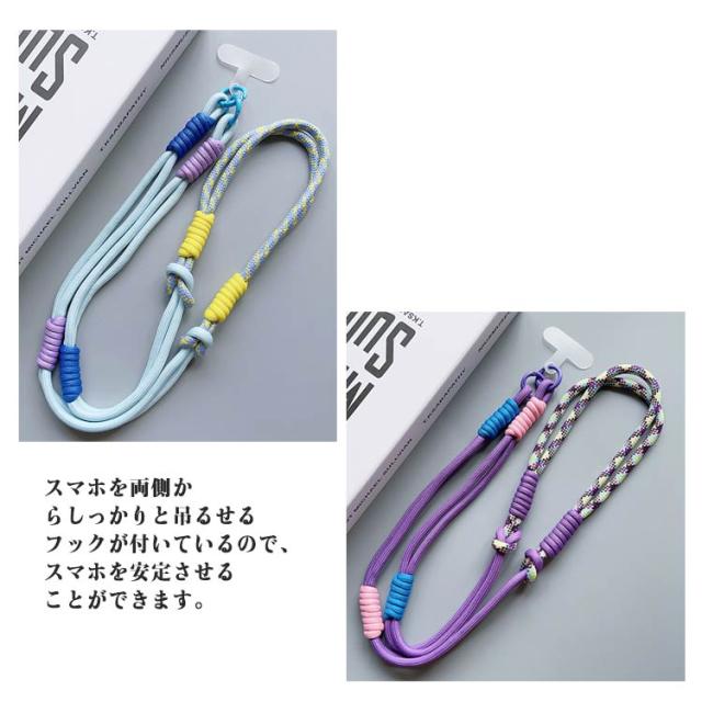 カラフル 落下防止 太め スマホストラップ 編み込み ストラップ ショルダーストラップ ショルダーストラップ スマホショルダーストラップ 紛失防止 iPhone用 Android用 全機種対応 ケースに挟むだけ 首が痛くない お洒落