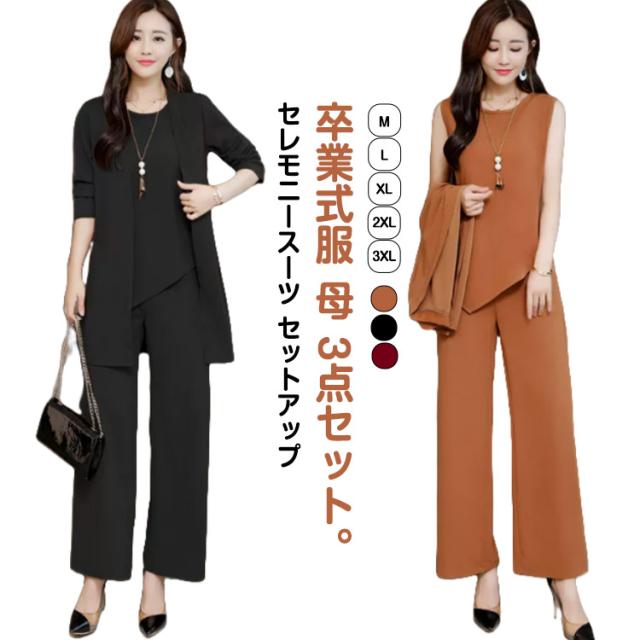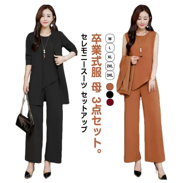 卒業式 服 入園式 レディース 母 入学式 セレモニースーツ セットアップ 20代 ママスーツ パンツスーツ 3点セット 結婚式 記念日 スーツジャケット ママ 発表会 卒業式 七五三 お宮参り 通勤 OL 卒園式 30代 40代 50代 黒 ブラック 上下セット フォーマル 大きいサイズ