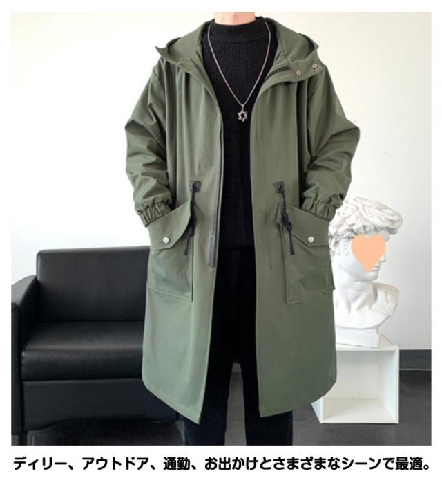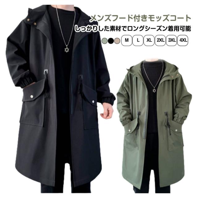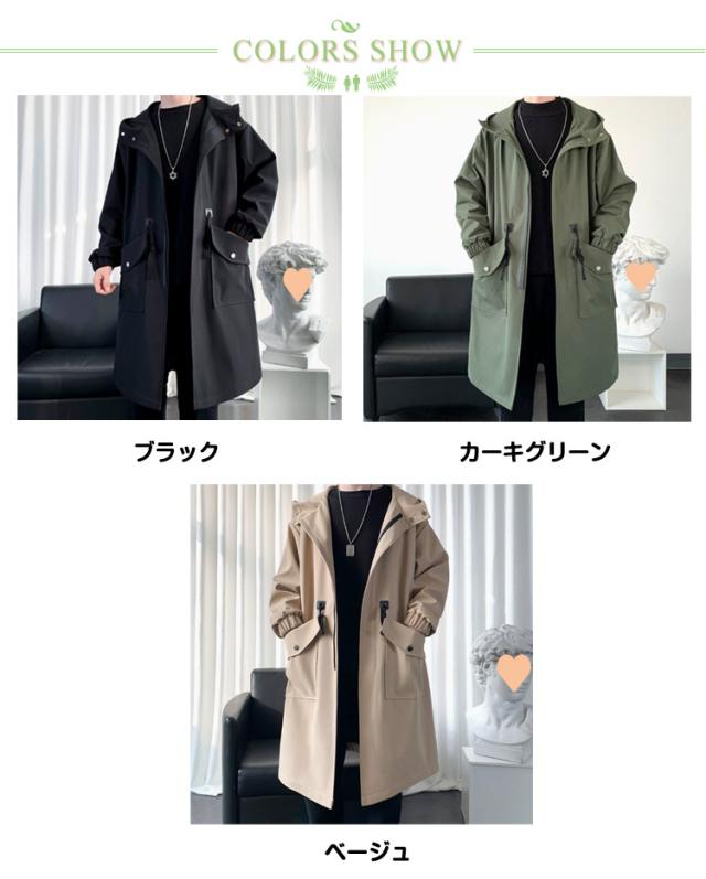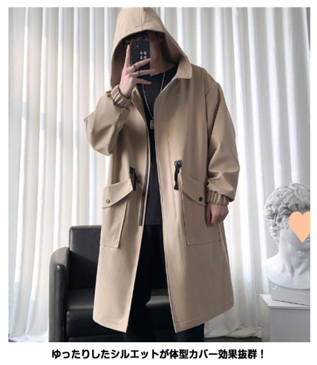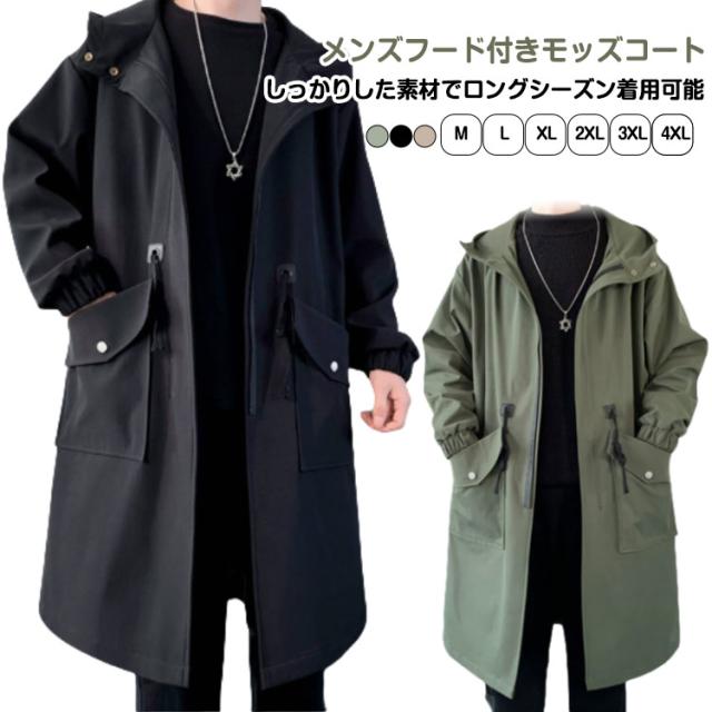 トレンチコート ジャケット スプリングコート 春 春コート メンズ モッズコート ミリタリージャケット フード付き 秋 アウター ゆったり ロングコート スプリングコート 大きいサイズ カジュアル おしゃれ チェスターコート