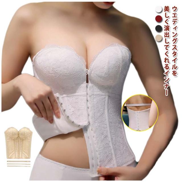 下着 きれいめ ウェディングドレス ビスチェ ドレスインナー ウェディングインナー ブライダルインナー 大きいサイズ ウエディングドレス用 ウエストニッパー 小胸 ウエストニッパー コルセット クッション ストラップ付 大人女性 可愛い インナー 肌着 下着