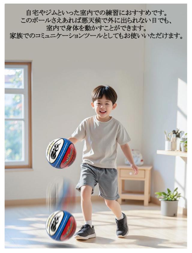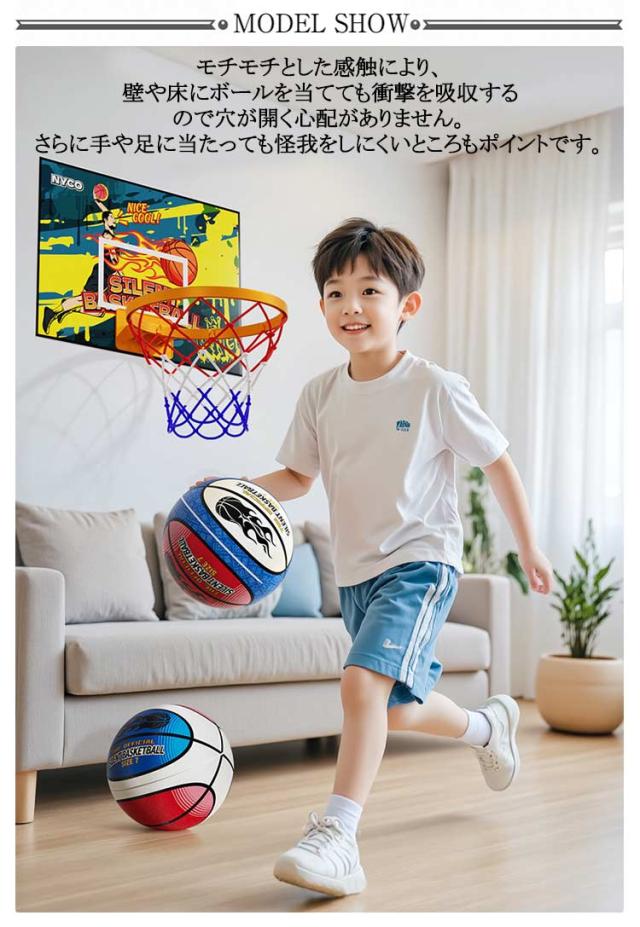 | 5号(3−6歳対応) 7号(6歳以上対応) PU素材を採用しており高い弾力性が魅力のバスケットボールです。 モチモチとした感触により、壁や床にボールを当てても衝撃を吸収するので穴が開く心配がありません。 さらに手や足に当たっても怪我をしにくいところもポイントです。 静音設計のバスケットボールはバウンドや壁当て練習の際に、 ノイズを最小限に抑え、近隣への騒音を気にすることなくお使いいただけます。 自宅やジムといった室内での練習におすすめです。 このボールさえあれば悪天候で外に出られない日でも、室内で身体を動かすことができます。 家族でのコミュニケーションツールとしてもお使いいただけます。 表面の汚れが気になる際は、水洗いで簡単にお手入れ可能です。 | |
