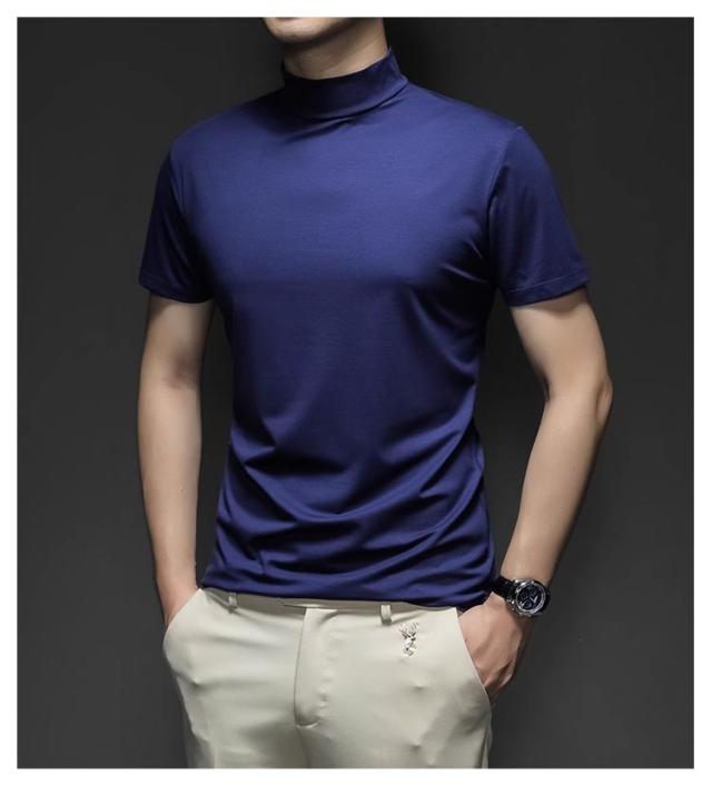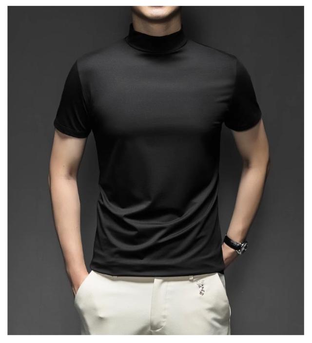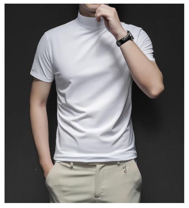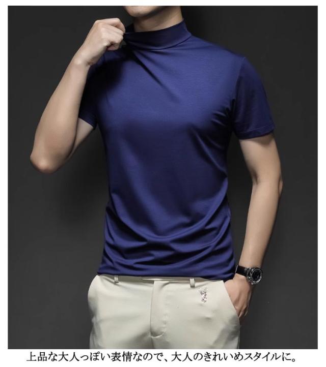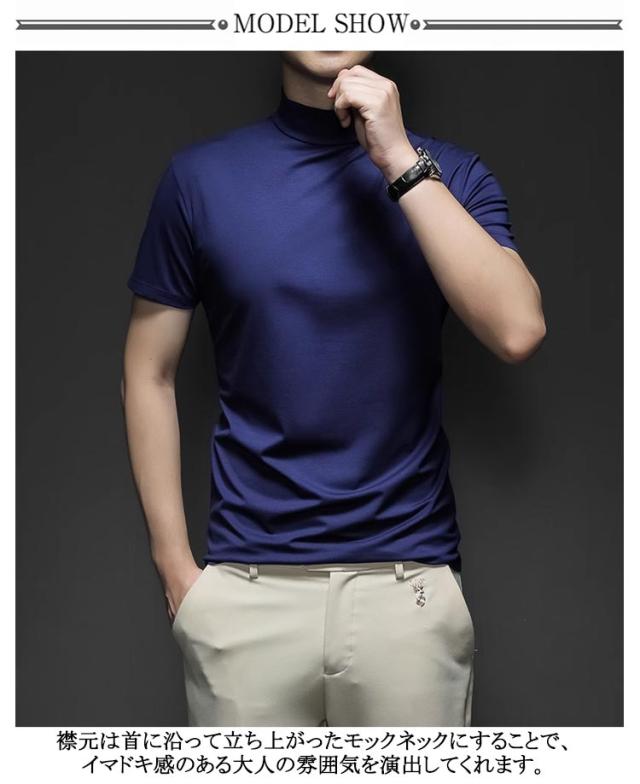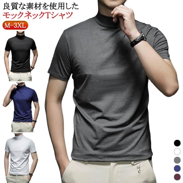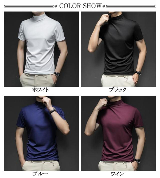 Tシャツ ゴルフウェア S カットソー ハイネック 無地tシャツ ハイネックtシャツ トップス メンズ 半袖 ティーシャツ 夏 カジュアル 無地 大きいサイズ シンプル ハイネック M L XL 2XL 3XL 4XL 5XL
