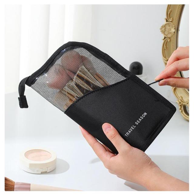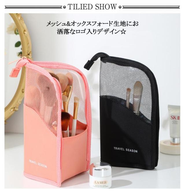 | スタンド式メイクポーチです。 化粧筆を入れるのに最適。ペンケースにも。 メッシュ&オックスフォード生地にお洒落なロゴ入りデザイン☆ 防水仕様で普段使いはもちろん、トラベル・出張など色んなシーンで大活躍☆ ちょっとしたプレゼントや母の日ギフトなどにもオススメ◎ | |