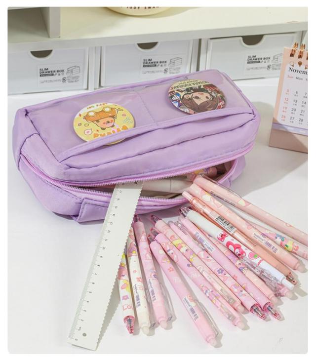 | 軽量で大容量の筆入れ、コンパクトなので非常に持ちやすい。 ペンケースとしてのほか、女性には化粧ポーチとしても有効活用可能。 防水性と耐久性が優れた材質で文具をしっかりと保護しますので、 男女問わず通学、通勤、ビジネスシーンでご利用いただけます。 ふせんや定規などを分けて収納できるポケットがついています。 消しゴム、定規、メジャー、付箋、ハサミ、修正テープなどの小物もたっぷり収納可能。 中身が見やすい後クリアポケット付き。 外側ボタンのデザインは、付箋や消しゴムなど、小さい文房具も取り出しやすく非常に便利。 | |