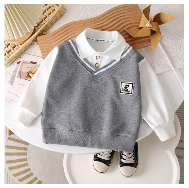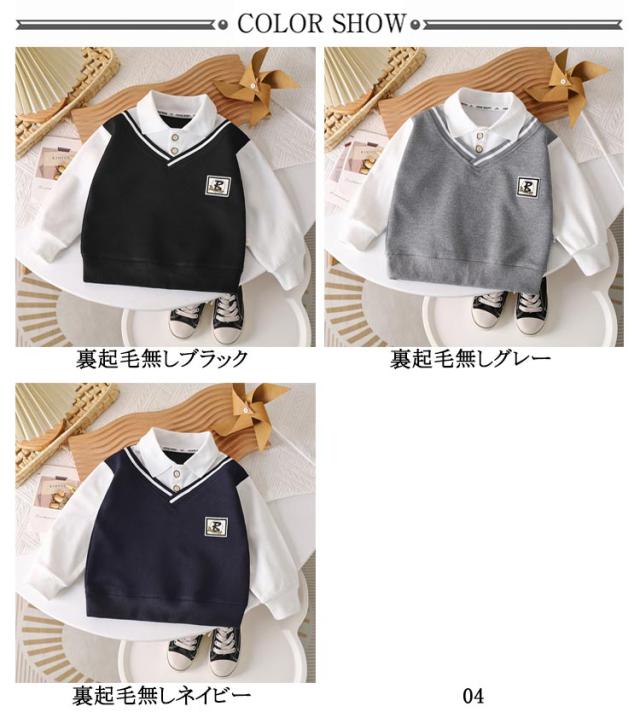 100cm 130cm レイヤード風 秋冬 男の子 トップス 120cm 160cm 子供服 150cm レイヤード風 110cm フェイクレイヤード スウェット 襟付き 子ども ベビー キッズ トレーナー プルオーバー 通園 通学 140cm 幼稚園 運動会 カジュアル